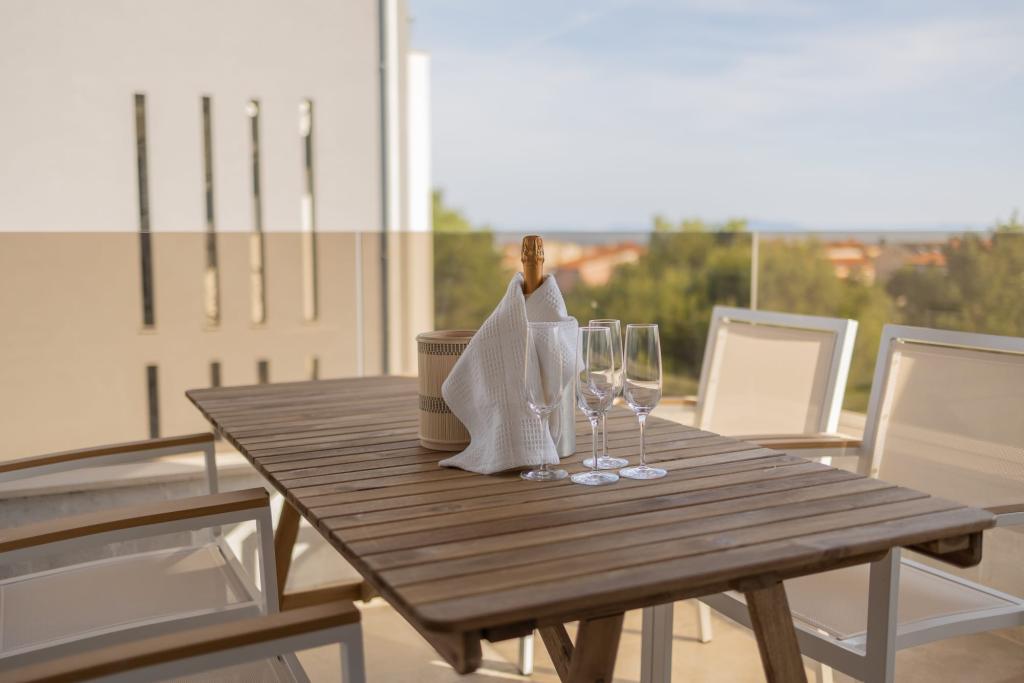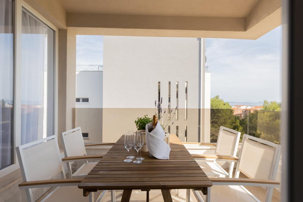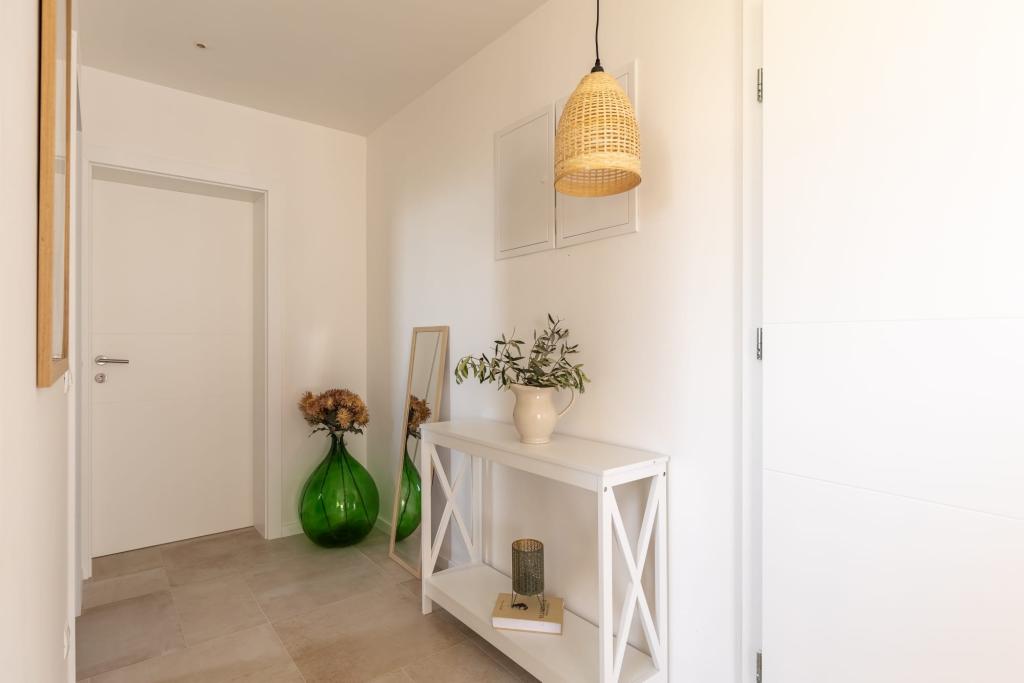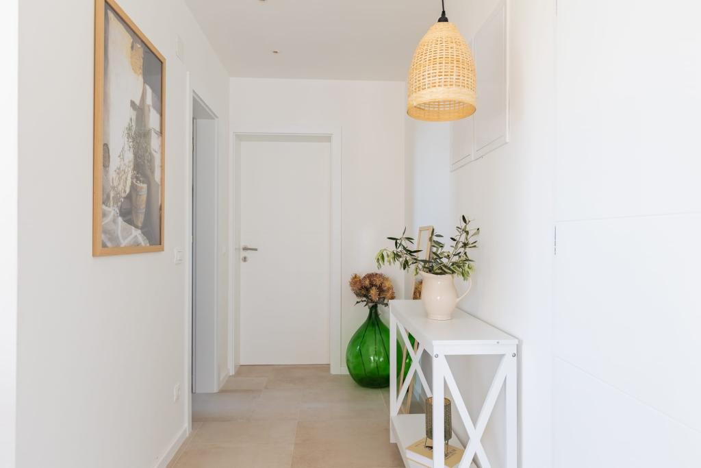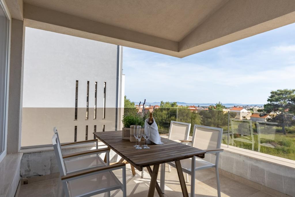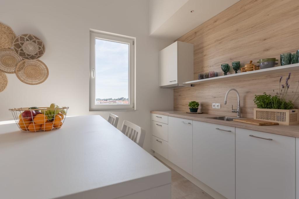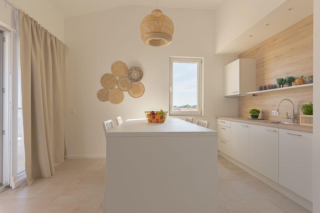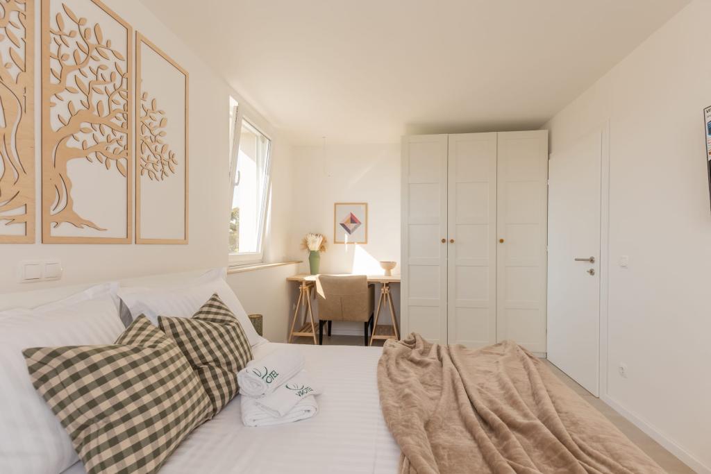 Vores luksuslejligheder er centralt beliggende, tæt på alle restauranter, butikker og hovedattraktioner, hvilket gør dem til det perfekte valg for en ubekymret ferie uden behov for en bil. Stranden ligger en kort gåtur væk. Ejendommen er en helt ny bygning, indrettet med særlig vægt på stil, elegance og kvalitet. De rummelige og luksuriøst møblerede lejligheder tilbyder et højt niveau af komfort, og hver lejlighed har en balkon eller terrasse, der er ideel til afslapning i løbet af dagen og aftenen. Interiøret er omhyggeligt designet og udstyret med naturlige materialer, der skaber en behagelig, varm og sofistikeret atmosfære. Gæsterne har privat parkering direkte ved indgangen til bygningen, hvilket yderligere bidrager til bekvemmeligheden og komforten under deres ophold. Disse lejligheder er ideelle for gæster, der søger en kombination af en førsteklasses beliggenhed, moderne luksus og en følelse af hjem.