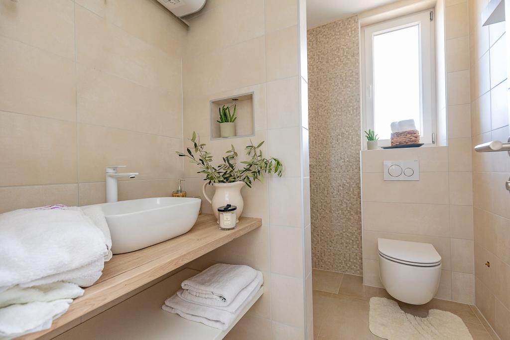 Vi tilbyder vores gæster mere end blot at leje indkvartering - vi tilbyder en følelse af velkomst, komfort og en ubekymret ferie. Ved ankomst vil du blive mødt med en velkomstdrink samt det grundlæggende til en behagelig start på dit ophold: kaffe, te, vand og slik. For fuld komfort tilbyder vi gratis morgenmad på værelset, alt efter dine ønsker. Under dit ophold er rengøringsservice tilgængelig, så du kan slappe helt af og nyde din ferie. Vi hjælper dig også gerne med at organisere udflugter, aktiviteter og lokale anbefalinger, og efter aftale tilbyder vi også tilberedning af fisk eller kød på grillen til afslappede og autentiske middelhavsaftener i dit eget hjem. Vores mål er, at du føler dig speciel, passet på og afslappet hos os - fra første øjeblik til din afrejse.