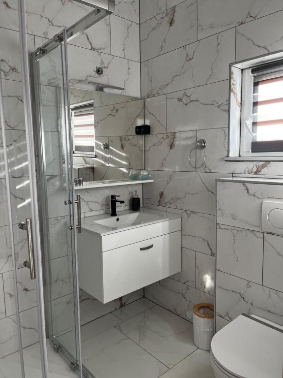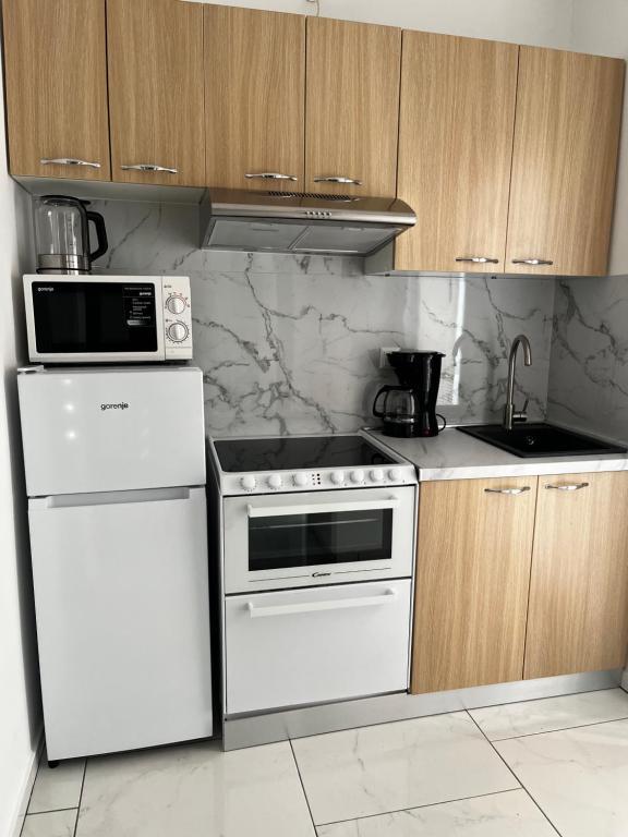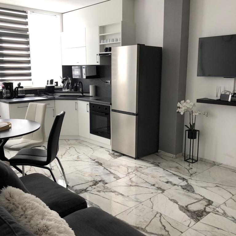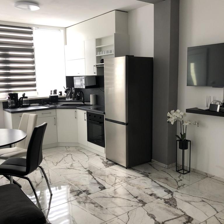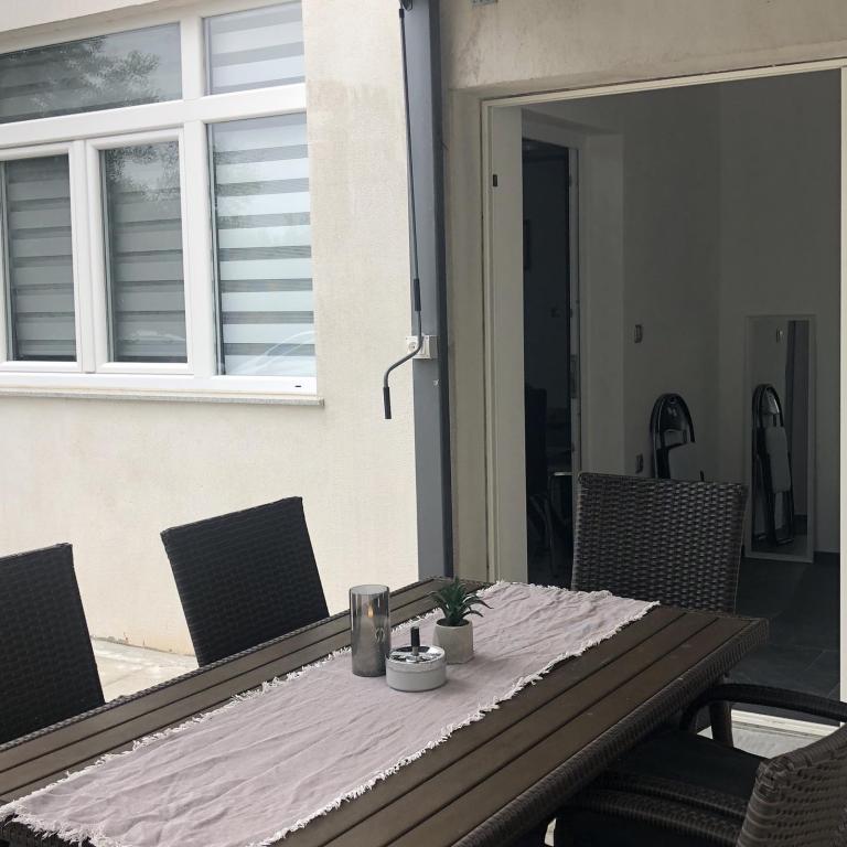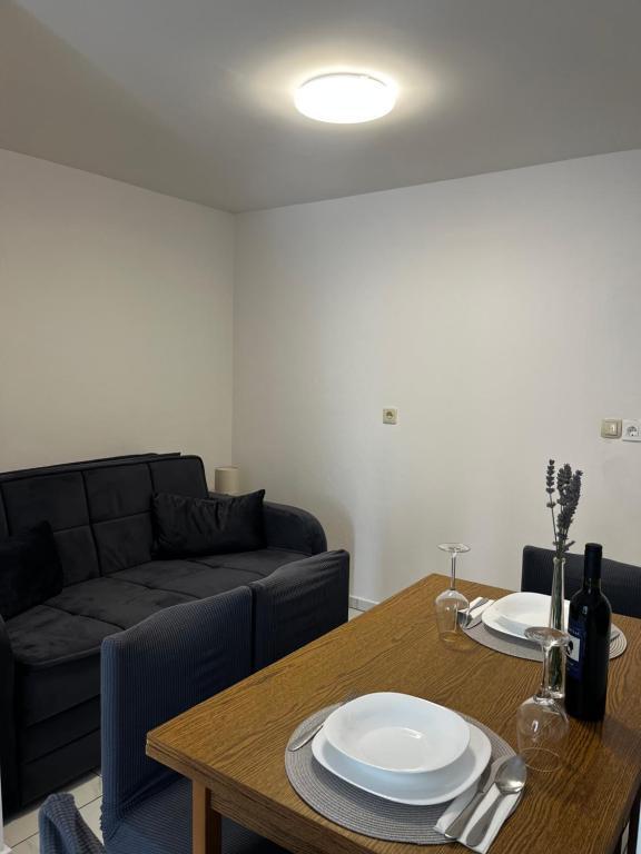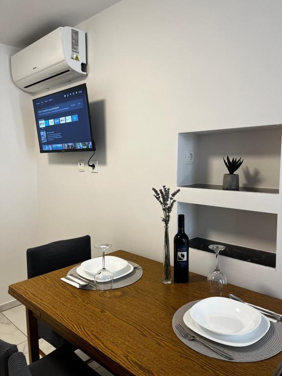 Lejlighederne Šmit ligger i første række til havet, kun få skridt fra bystranden Jadro, hvilket gør dem til et ideelt valg for gæster, der ønsker at være så tæt på havet og stranden som muligt. Gæsterne har adgang til en gratis parkeringsplads i ejendommens indhegnede have, hvilket sikrer ekstra sikkerhed og ro i sindet under deres ophold. Hver boligenhed har en terrasse med havudsigt, et komfortabelt siddeområde og et tv. Lejlighederne er fuldt udstyrede, og køkkenerne har køleskab, mikrobølgeovn og alt nødvendigt redskab til at tilberede måltider. Hver lejlighed har eget badeværelse med bruser, og alle områder har aircondition for at gøre dit ophold behageligt, selv på varme sommerdage. I umiddelbar nærhed af ejendommen, kun 5 minutters gang væk, finder man alle de vigtige faciliteter på øen Vir – restauranter, caféer, butikker, et bageri og en promenade langs havet – hvilket gør Lejlighederne Jadro til et fremragende valg for par, familier og gæster, der ønsker en ferie uden behov for en bil.