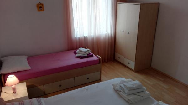 Velkommen til vores komfortable og rummelige lejlighed beliggende på første sal i et familiehus. Lejligheden er 100 meter høj. I den vedlagte og lukkede gård af familiens hjem er der en parkeringsplads til flere biler, herunder værtsvognen. Værftdørene er lukkede, så dine biler er sikre. En 5 min gang til stranden og 10 min til centrum af vandet. I umiddelbar nærhed af lejlighederne er der et stort indkøbscenter Tommy, et cateringfirma Marenda, en seafoodrestaurant, en valutaudveksling og et minibageri.