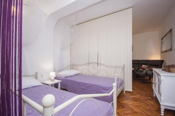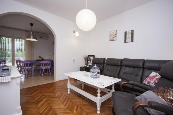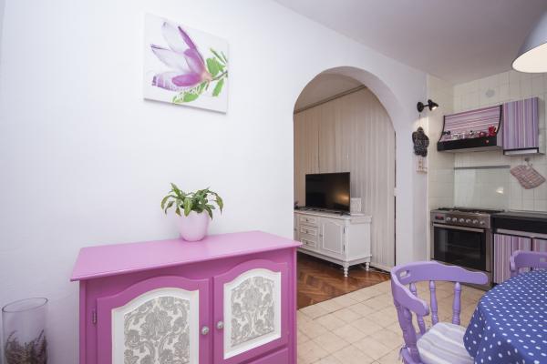I det rolige kvarter i den smukke Vodice forventer den romantiske lejlighed Lilly dig en god hvile og afslapning. I en renoveret lejlighed (70 m2) af afslappende lilla nuancer, start morgenen på en terrasse (10 m2) med kaffe og god læsning med udsigt over haven, der er fuld af middelhavsplanter og blomster. Lejlighed Lilly ligger i stueetagen i et familiehus. På gården er der fri parkering for gæster og grill. I nærheden er der en smuk stenstrand med en naturlig skygge (7 min gang), hvor du kan gå efter en solskinsdag og opleve en solnedgang. Promenaden fører dig videre til centrum af Vodice, hvor mange gode restauranter, caféer og klubber venter på dig. Du kan tilbringe aftenen på terrassen med et glas god vin og stearinlys eller besøge den nærliggende diskotek Hacienda og Exit klubben. Fordelen med indkvartering i Aparmana LILLY er, at vi tilbyder kvalitet og smuk indkvartering, i en fremragende beliggenhed, hvor det meste kan gøres til fods, og der er gratis parkering. Vi tilbyder yderligere faciliteter: cykler, kajakker, organiseret kajakfiskeri. Vodice ligger kun 10 km fra Šibenik, som har et rigt kulturelt og historisk centrum og en af de smukkeste St. Jacobs (UNESCOs verdensarvssteder) katedraler. I nærheden ligger de smukke to nationalparker, Krka Falls og Kornati. Følg os på FB Apartment Lilly, Vodice, Kroatien