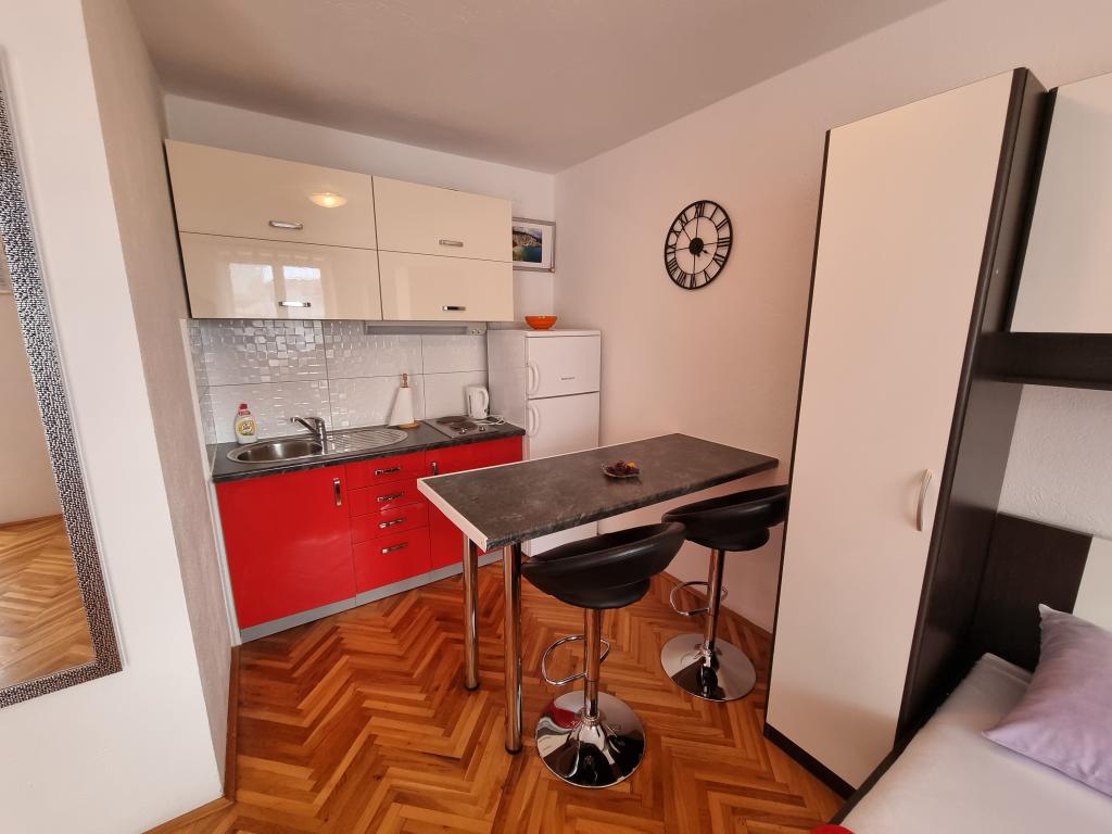 Indkvarteringen er fremragende. Komfortabelt og ryddeligt studie med stor terrasse. Værterne er ekstremt venlige mennesker, tilgængelige på alle tidspunkter. Hvad angår selve placeringen, tager det omkring ti minutters let gåafstand til stranden, omkring 15 minutter til centrum. På vej til havet er der bager, større marked og restaurant. Alle faciliteter, uanset om det er for unge eller familier med børn, er let tilgængelige. Gaden, hvor lejligheden ligger, er stille, uden meget trafik, hvilket er en ekstra grund til at slappe af i den tid, du tilbringer i lejligheden. Indkvartering for enhver anbefaling. Vodice kan også anbefales, velholdte strande, varmt hav, vidunderlig bymidte og en fantastisk beliggenhed for at udforske Dalmatien.