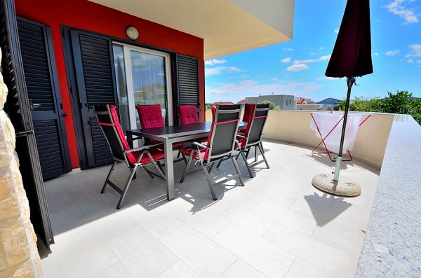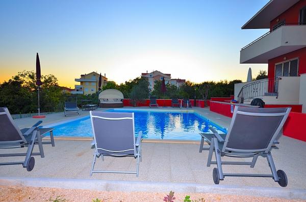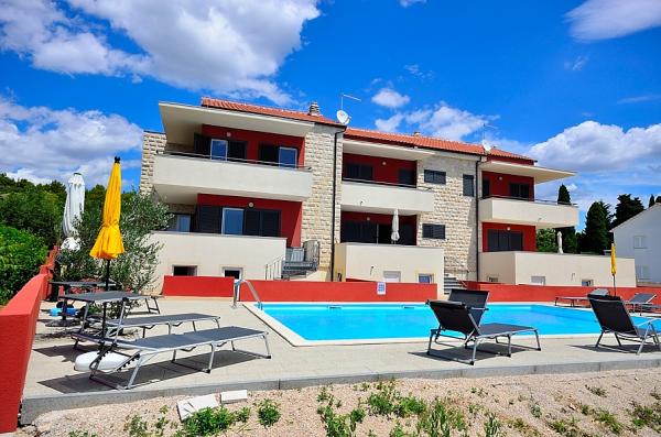 Vodice- nybygget hus med en pool hus 6 2, 400 m fra stranden, 500 m til Blue Beach (strand med blåt flag) Huset består af stueetagen, hvor toiletterne, køkken og stue med en stor terrasse på første sal er der tre soveværelser, badeværelse og terrasse. Om brug af poolen, 2-3 parkeringspladser, grill, wi-fi, tv, satellit,