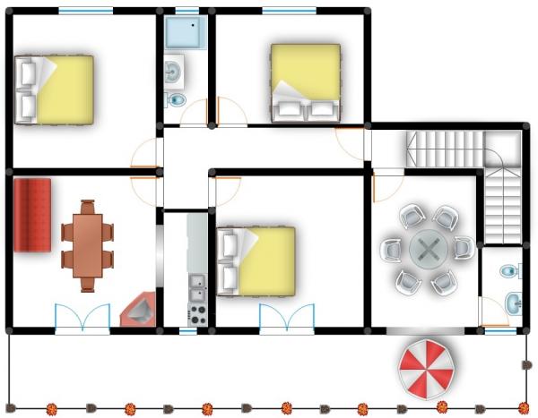 Ferielejlighed til fem personer med ekstra seng (110 m2)