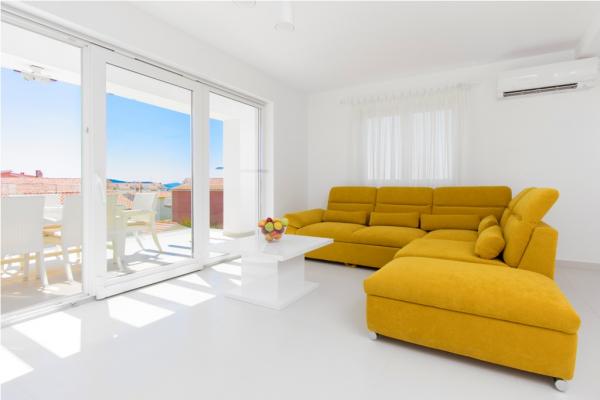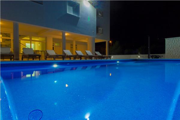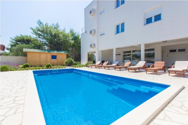 Villa Royal er sammensat af 6 lejligheder, som er kategoriseret med 5 stjerner. Villaen har en swimmingpool med liggestole. Beliggende i Srima landsby nær byen, og ligger 350 m fra havet. Der er lyse og airconditionerede lejligheder med gratis trådløs internetadgang, LCD-tv med satellitkanaler, en terrasse og gratis parkering. Alle moderne lejligheder har air-condition i stue og soveværelser, fuldt udstyret køkken med opvaskemaskine og ovn, elektrisk og køleskab. Hver lejlighed har 2 badeværelser og toiletter. Badeværelserne er udstyret med badekar, vaskemaskine, brusebad og hårtørrer. Den nærmeste strand er 350 meter, samt en restaurant og café. Vejledning Center er 1500 meter væk, Sibenik 15 km, Zadar 60 km, Krka National Park 30 km Skradin 30 km, Split 90 km, og ligger i nærheden af nationalparken.