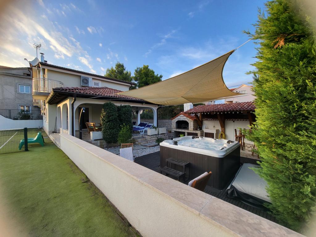 Hele huset kun til dig! Paradis for familier! Velkommen til Villa Melosa! Komfortabelt feriehus i Vodice med privat tennisbane. Huset kan rumme op til 10 gæster. Det har 5 soveværelser, 3 badeværelser, et køkken, en stue og en rummelig terrasse, hvor du kan slappe af og nyde grillaftener og en udendørs jacuzzi til 5 personer. Huset har aircondition. Der er 3 parkeringspladser til rådighed i bygningen, to med overdækket garageplads. Hele ejendommen er indhegnet, så du kan være sikker på, at børn ikke kommer ud på vejen og kan lege ubekymret i den rummelige gårdhave.