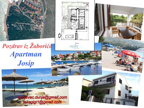 Lejlighed Josip 7, er placeret i Zaboric, Gade Jasenova 99. Lejlighed Josip 7, har 3 stjerner og er registreret for 2-7 personer i en lejlighed. Lejlighed Josip 7 ligger 50 meter væk fra havet og 1 km fra byens centrum. Lejligheden er beliggende på første sal. Den består af 3 soveværelser, køkken, badeværelse med toilet, balkon og en overdækket terrasse. Lejligheden har et køleskab, elektrisk komfur, porcelæn, satellit-tv, aircondition, grill. Vinduerne er myggenet. Parkering er i gården. 50 m fra huset er en smuk restaurant Veranda. Pris forhandle direkte med ejeren. Prisen afhænger af antallet af gæster, der ønsker at leje en lejlighed, og afhænger af, om preseason, sæsonen eller uden for sæsonen. En fredelig ferie, rig med pinjeskove og olivenlunde, smukke sand og sten strande, klart vand, øgruppen med mange bugter og gode forbindelser med Sibenik, gør det til en favorit turistdestination.