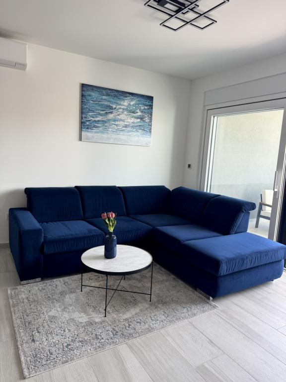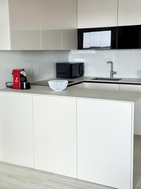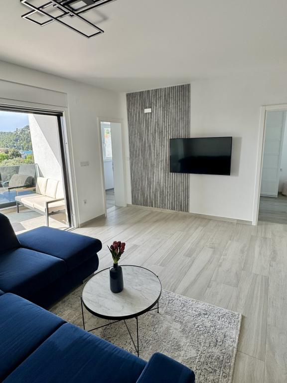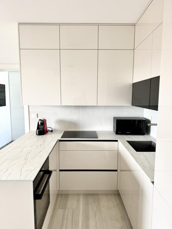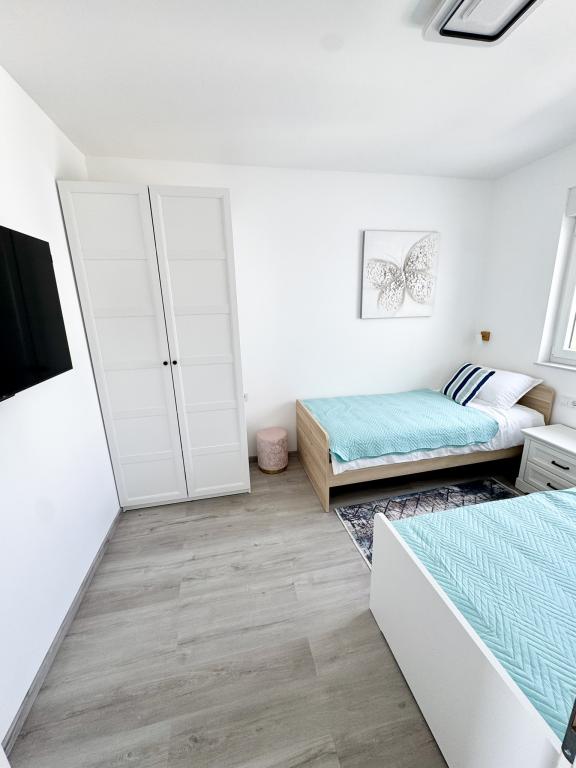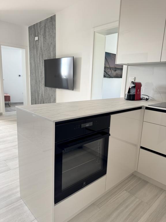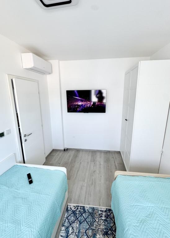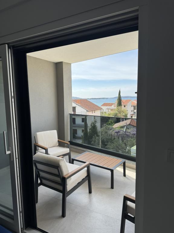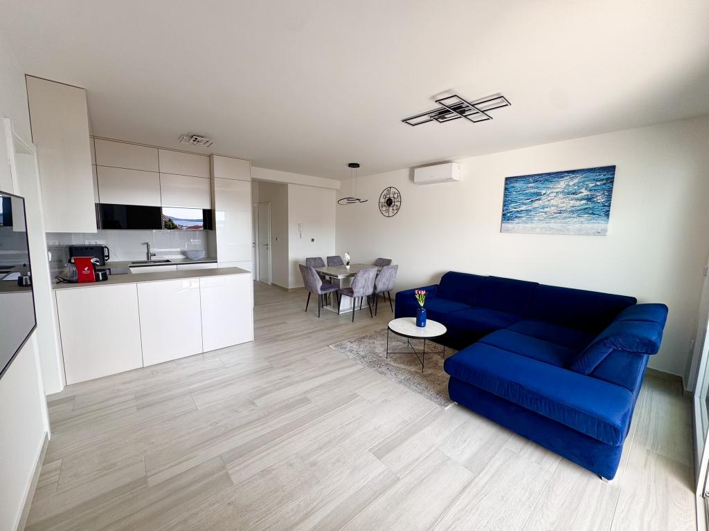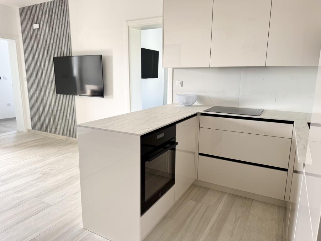 Ny moderne lejlighed, 73m2, to soveværelser, to badeværelser, alle værelser med aircondition og TV. Den eneste lejlighed på anden sal med havudsigt.