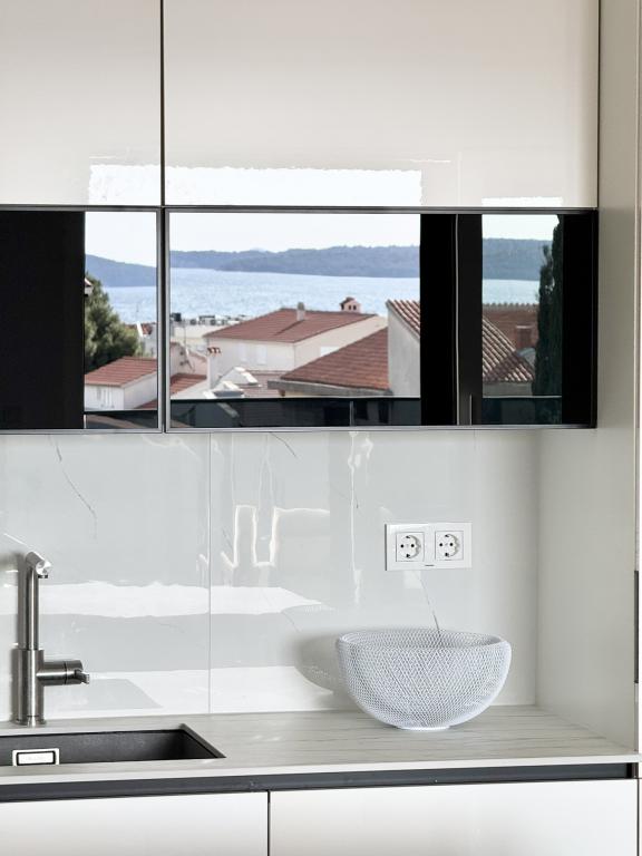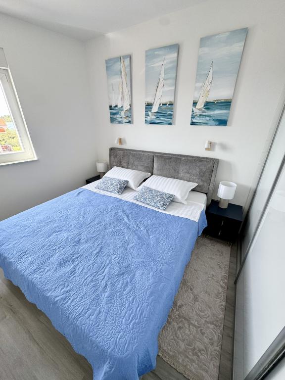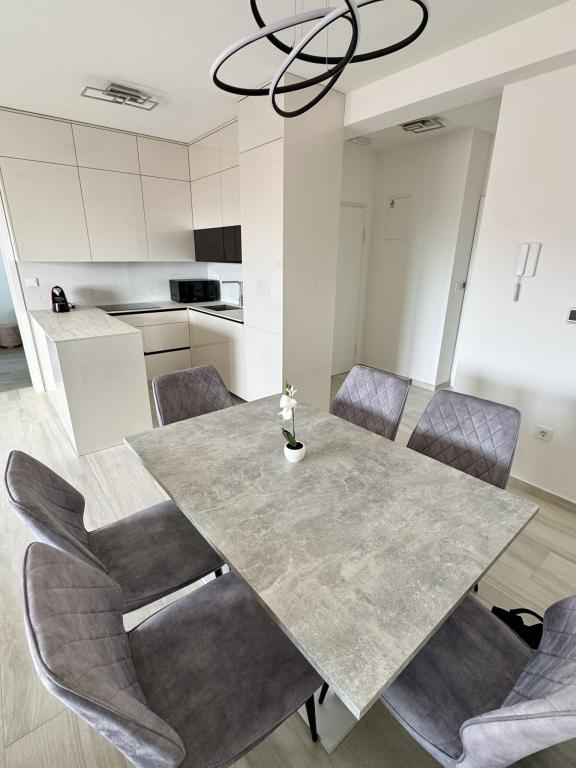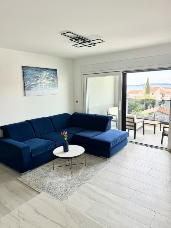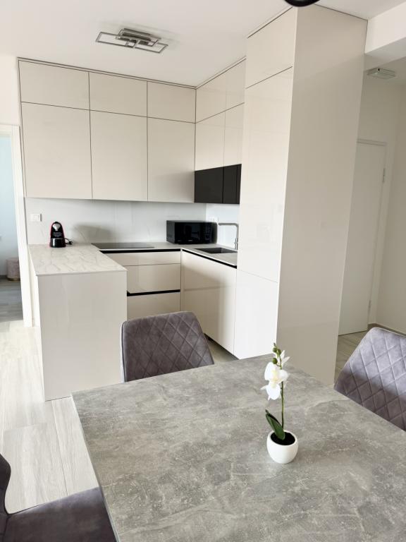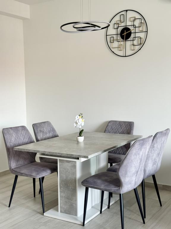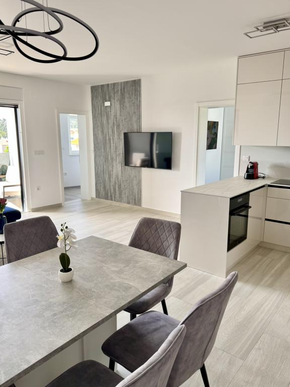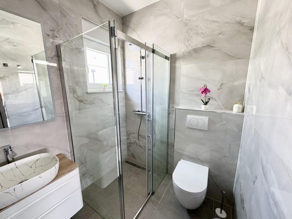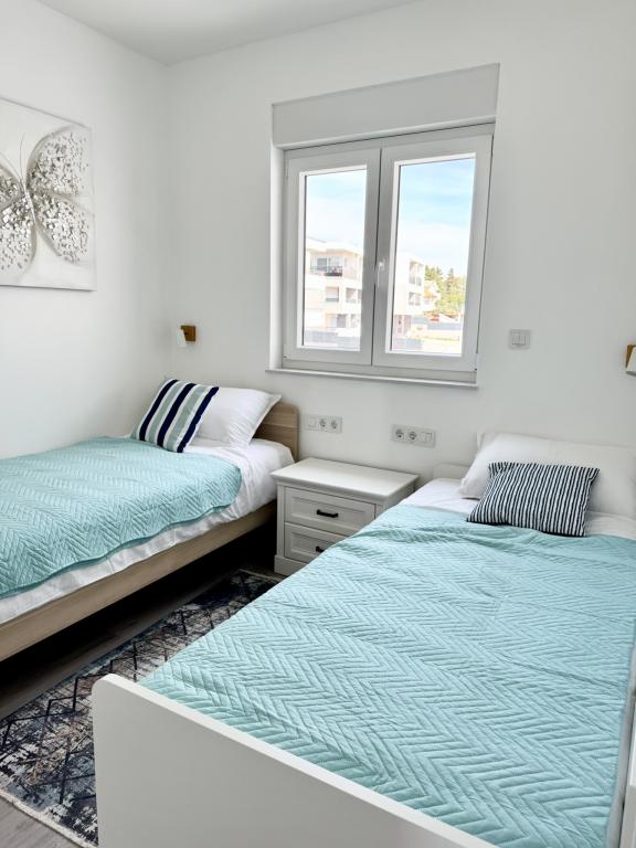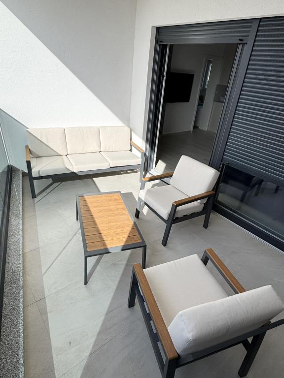 Ny moderne lejlighed, 73m2, to soveværelser, to badeværelser, alle værelser med aircondition og TV. Den eneste lejlighed på anden sal med havudsigt.