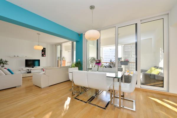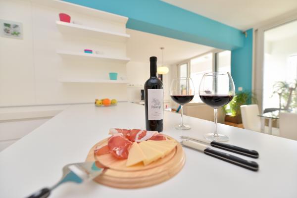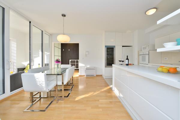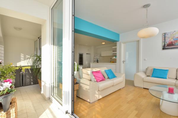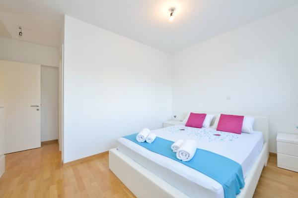 Luksus helt ny lejlighed i en unik beliggenhed. Set i en elegant, rolige og trygge kvarterer tæt ved havet og byens centrum (5 min gang). Lejligheden har en privat garage. I nærheden er der alle nødvendige faciliteter: restauranter, barer, posthus, banker, skønhedssaloner, byen strand, gas cepka, marked, fiskemarked, havnen, byens seværdigheder, taxi osv ... Lejligheden er novopremljen de højeste standarder (95 m2) består af tre værelser og hver har en LCD. Master soveværelse har eget badeværelse. Det andet badeværelse er udstyret med en vaskemaskine og tørretumbler til varerne. I stuen og spisestue er solrigt med glasvægge, der fører til balkonen og udstyret med alle nødvendige ting: lcd, internet, samtaleanlæg, opvaskemaskine, emhætte, ovn og bestik. Balkon har en dejlig terrasse ideel til morgen morgenmad og afslappende. Lufthavnen ligger 12 km fra lejlighederne, og der er mulighed for tilrettelæggelsen af transporten og tilbyder også hjælp til at organisere turen.