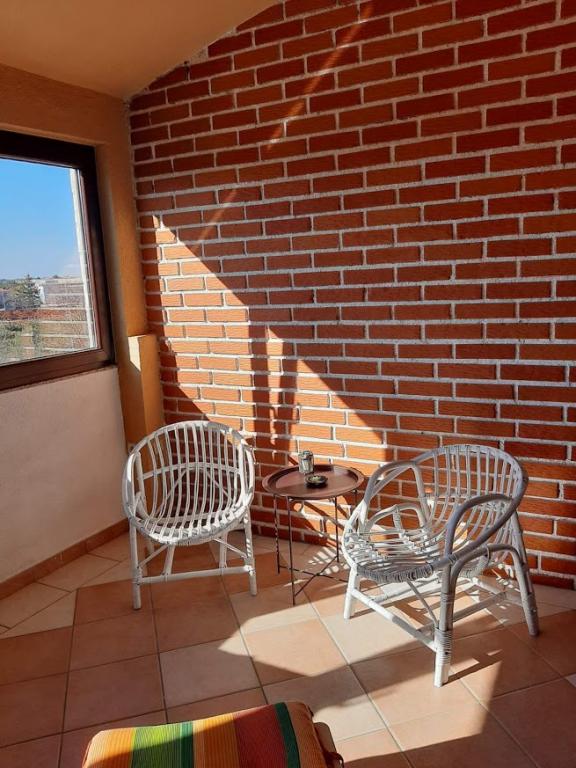 Huset ligger i et roligt område. Zadars centrum ligger cirka 10 minutter væk i bil. Den nærmeste strand ligger også 10 minutters kørsel derfra. Lejligheden består af 2 soveværelser med dobbeltseng, køkken med spiseplads, stue, badeværelse, 2 lukkede balkoner og en åben altan.
