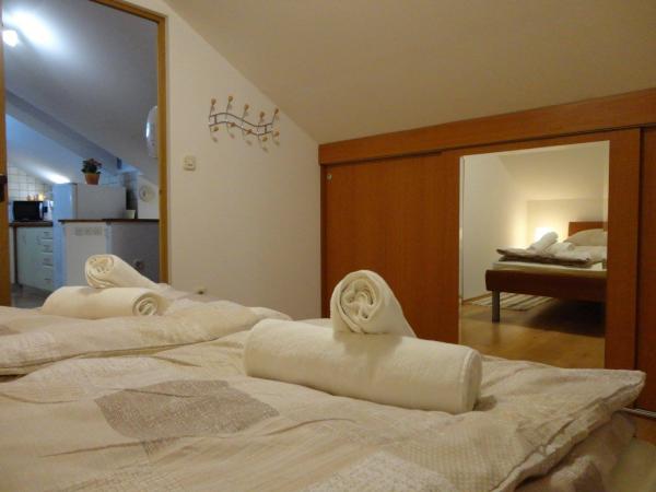 Lejlighed Melanie er beliggende i en førsteklasses beliggenhed i byen Zadar, hvor alle trin. Lejligheden ligger i en privat bygning med egen indgang. På første sal bor ejerne, mens lejlighed på loftet af bygningen, hvilket gør det ekstra speciel og derfor mere behageligt at blive. Lejlighed Melanie er placeret på det punkt, hvor alt kan besøges i et par skridt. Således busstationen 7 minutters gang, store by strand Kolovare 9 minutters gåafstand, mens den gamle bydel og alle de historiske seværdigheder i Zadar der for kun 15 minutter. Desuden tæt på et stort indkøbscenter, markedsplads, marked, hospital og posthus. I nærheden af lejlighederne er der gratis og gratis parkeringspladser. Simpelthen sætte Opholder sig i en lejlighed Melani alt du træder på stedet.