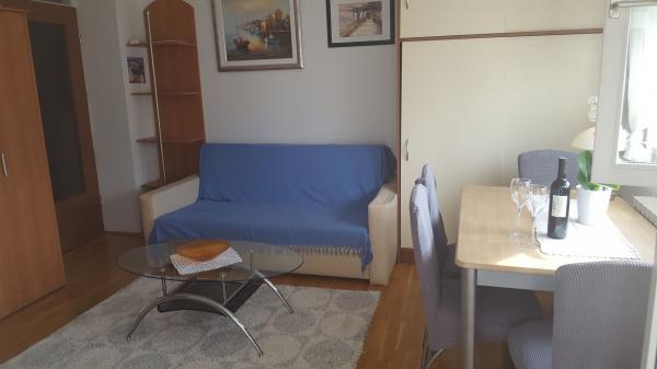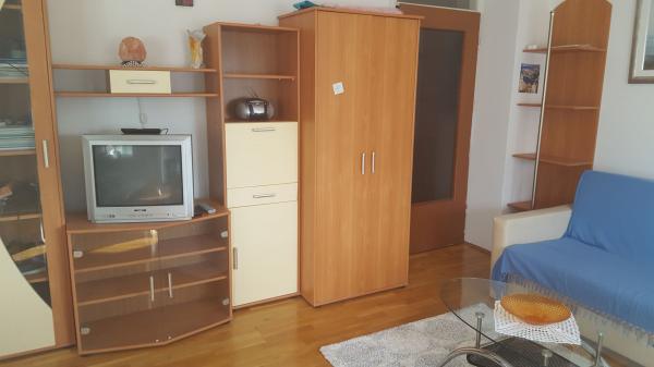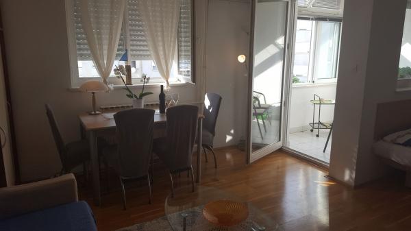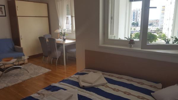 Studio lejlighed på 38m2 i en rolig del af Zadar. Beliggende på tredje sal. Den er udstyret med alt det nødvendige for et behageligt ophold. I umiddelbar nærhed af butikken, en masse barer og restauranter, og kun 10 minutters gang fra bygningen er der store indkøbscentre, busstationen og McDonalds. Stranden kan nås på 20 minutters gang eller 5 minutter i bil, og til byens centrum 5-10 minutter i bil. Gæsterne kan benytte T-Com Max-tv med den grundlæggende pakke af programmer og gratis wi-fi.