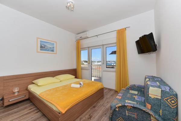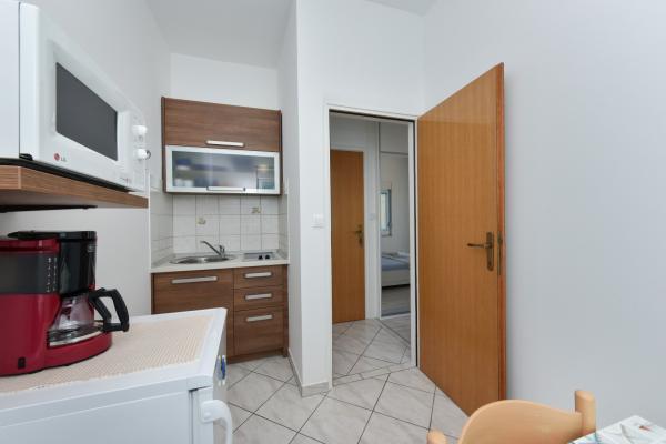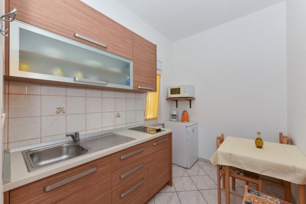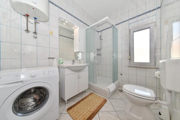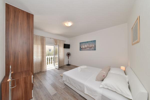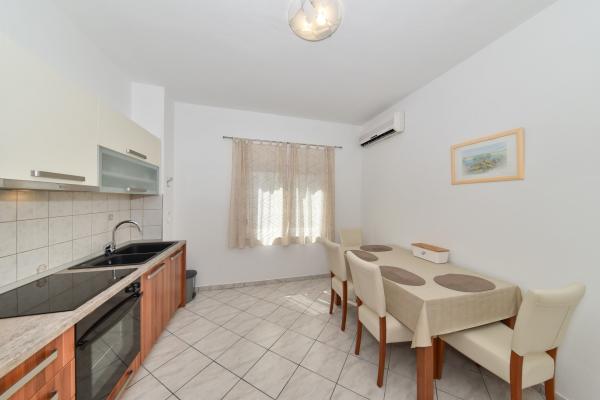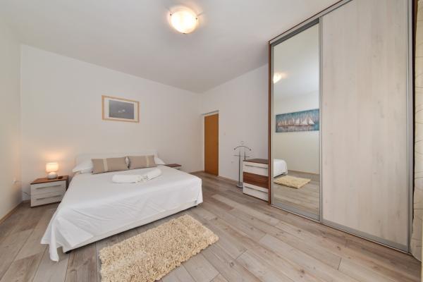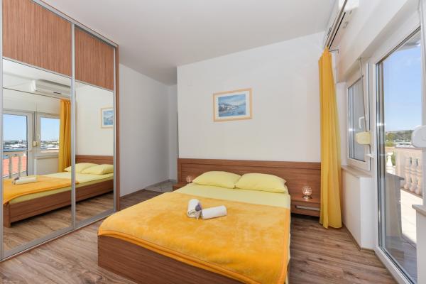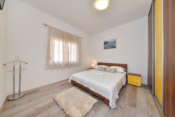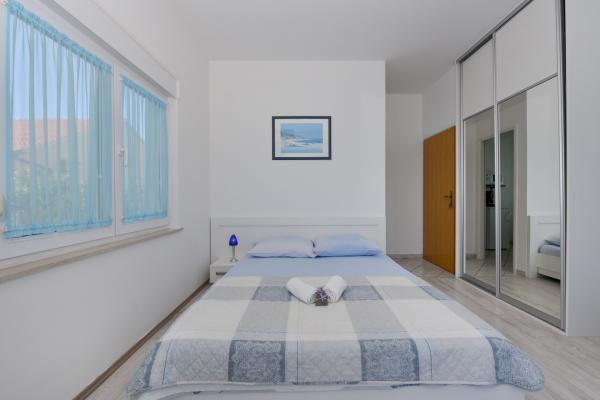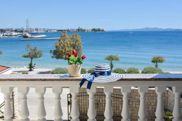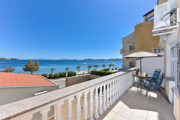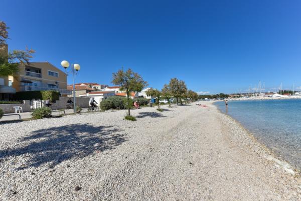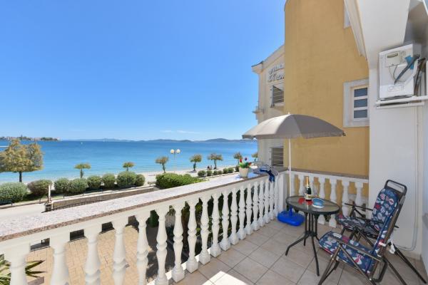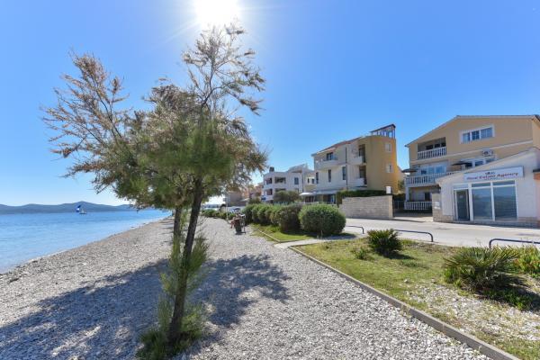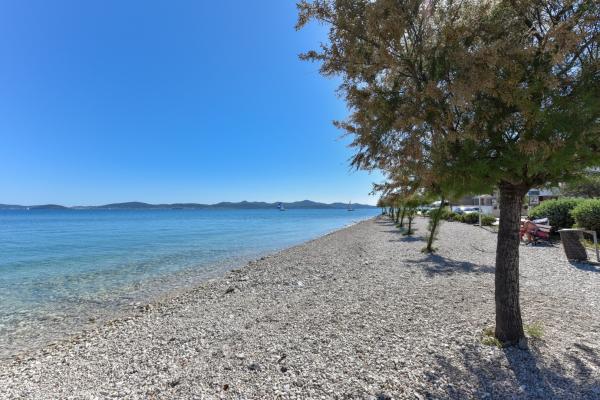 Umiddelbart på stranden er der to lejligheder i en familie hus i Zadar området Puntamika, ved havet, foran stranden. Puntamika er en del af Zadar er ideel til en fredelig og afslappende ferie, da det ligger i en rolig del af byen, direkte på stranden. Hver lejlighed har et areal på 30 m2 terrasse 5 m2, beliggende på første sal. Begge lejligheder tilbyder en smuk udsigt over byen Zadar, halvø, hav og Ugljan. Langs stranden er der en promenade langs som er placeret alle vigtige faciliteter: butikker, restauranter, barer, apotek, bank og busstoppested. Parkering er i et indhegnet område foran huset. Hver lejlighed har plads til 2 personer.