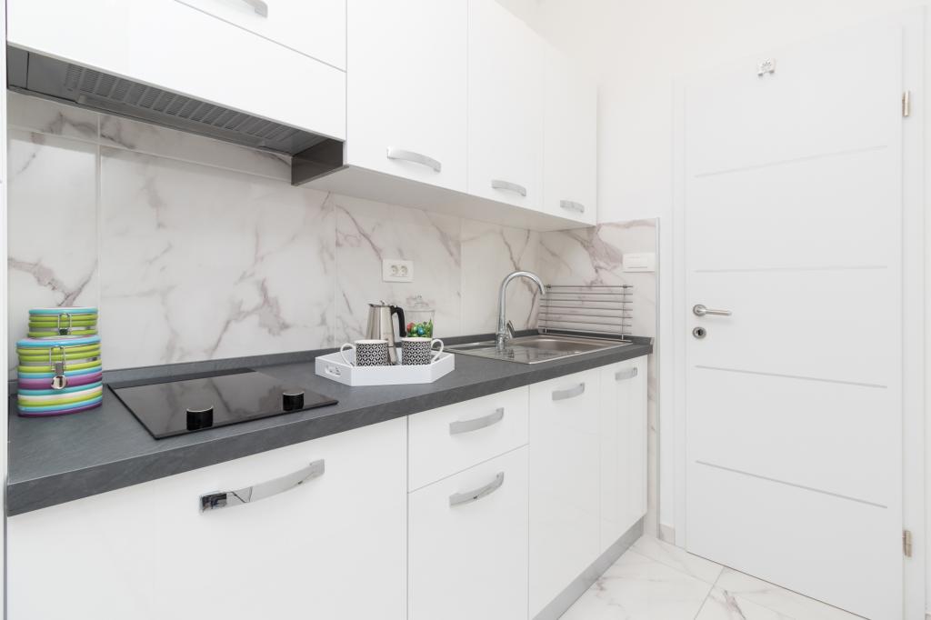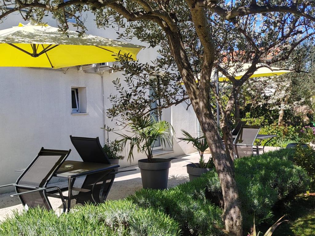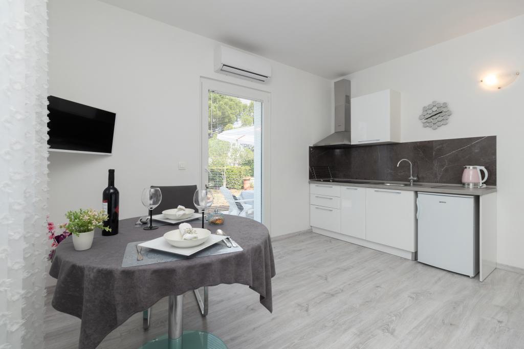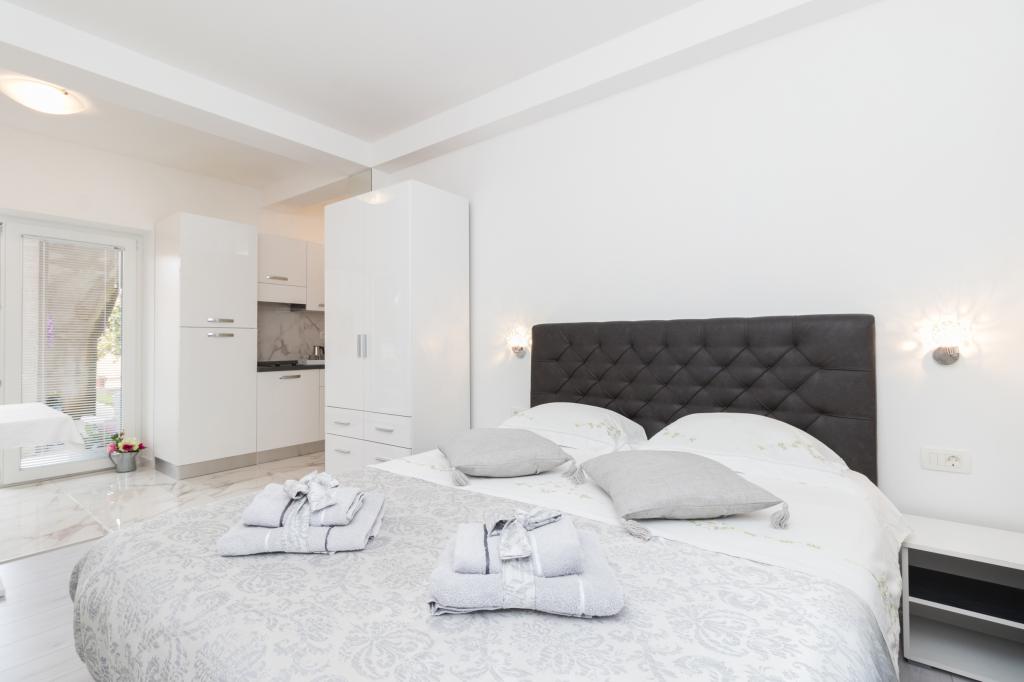 De moderne udstyrede lejligheder er beliggende i fredelige omgivelser med en anlagt have, ideel til afslapning og udendørsaktiviteter. Ejendommen tilbyder den perfekte kombination af komfort og funktionalitet, og hver lejlighed er omhyggeligt indrettet for at sikre gæsterne et behageligt ophold. Beliggenheden er yderst praktisk, togstationen ligger kun 10 minutter væk til fods, og lufthavnen ligger 15 minutters kørsel væk, hvilket giver nem ankomst og afrejse. Hvis du ankommer i bil, er der mulighed for sikker parkering på ejendommen. Alle nødvendige faciliteter såsom butikker, restauranter og caféer ligger i nærheden, mens stenstranden kun ligger 7 minutter væk til fods.