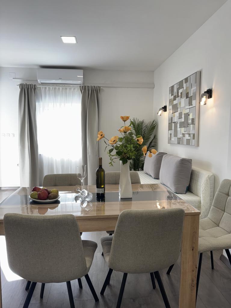 Vi tilbragte en meget dejlig uge i 4+2 lejligheden. Lejligheden er meget flot, moderne, ren, stor og har alt hvad du behøver på ferien. En terrasse med havepavillon, opholdsområde og figentræ i gården er et højdepunkt. Promenaden ind til byen ligger to minutters gang fra huset. Parkering er foran huset og er fantastisk. Samir er en meget flink udlejer og er der altid, hvis du har spørgsmål. Vi vil gerne komme tilbage.