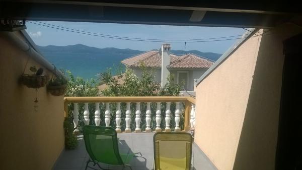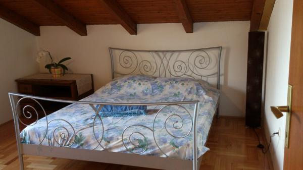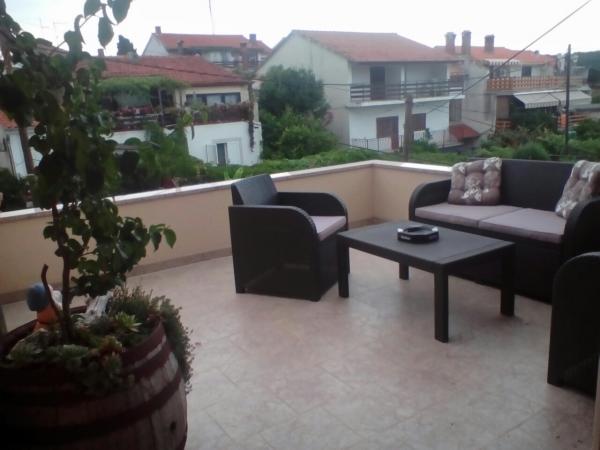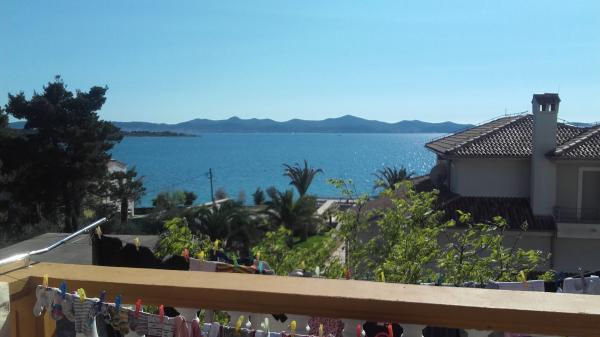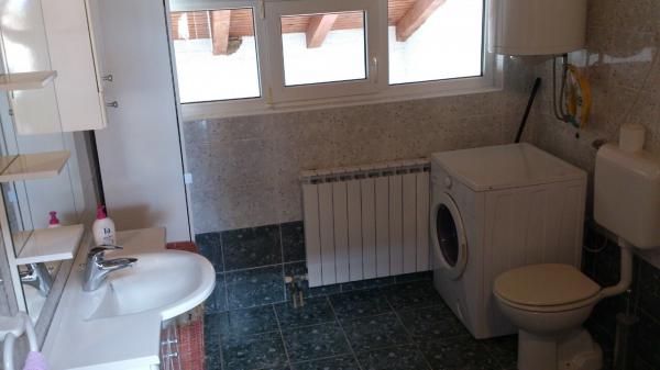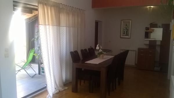 Lejligheden er beliggende på loftet af huset, 125 m2, 50 m fra havet. Det har tre soveværelser, badeværelse, stor stue med pejs, aircondition, fuldt udstyret køkken og to store altaner. I tilfælde af behov, er der også barneseng og høj stol for et barn. Parkering til bilen i gården foran lejlighederne, kæledyr er velkomne.