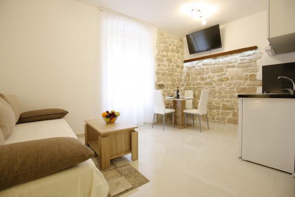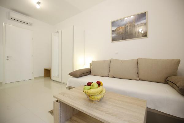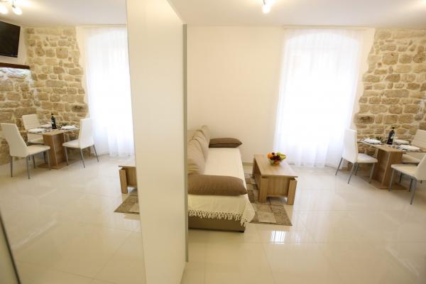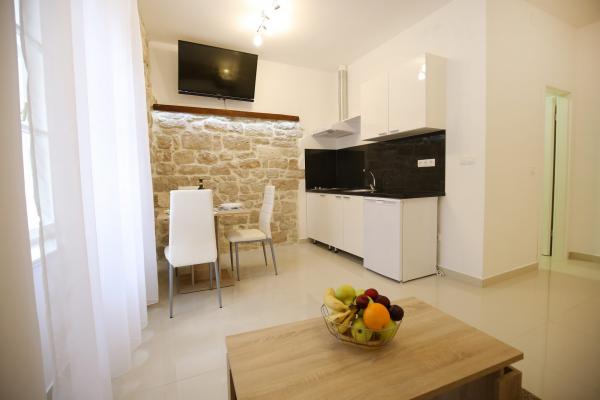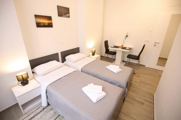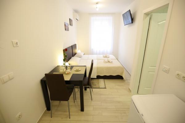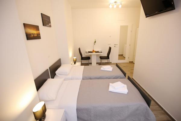 Lokaliteter af Zadar Apartments er placeret i midten af den gamle bydel, kun 100 m fra kaptajnens tårn og 60 m fra Folkets Plads, mens havet orgel ligger kun 10 minutter til fods. Fri parkering ligger 8 minutter til fods. Den er udstyret med to SMART TV klimaanlæg fuldt funktionelt køkken, med udsigt over byens seværdigheder, bad indeholder hårtørrer, toiletpapir, shampoo, flydende sæbe, håndklæder store og små, et skrivebord, et klædeskab og en dobbeltseng i soveværelset. Studio lejlighed er udstyret med et fuldt funktionelt køkken, aircondition, spisestue, SMART TV 43 \ diagonal, opholdsområde tilbyder en sofa konverterer til en dobbeltseng 160x200, med udsigt over byens seværdigheder og et fuldt udstyret badeværelse. Værelserne er udstyret med to enkeltsenge, der nemt kan fusionere ind i en dobbelt uden mellemrum mellem madrasserne, aircondition, garderobeskab, bord med to stole køleskab og kedel, og et privat bad og SMART TV.
