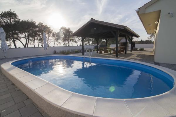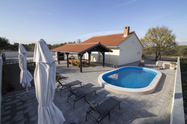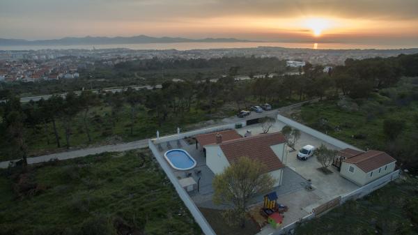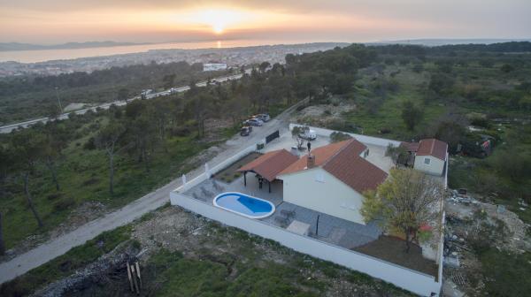 Moderne lejligheder Belas med pool i et roligt område i Zadar med udsigt over hele byen, kun 3 min. fra centrum og stranden. Det strækker sig over 10 000m2 af privat jord i et afsondret og tilbyder absolut fred og ensomhed. Fuldt udstyret med alle moderne apparater og giver mulighed for yderligere indkvartering efter forudgående aftale.