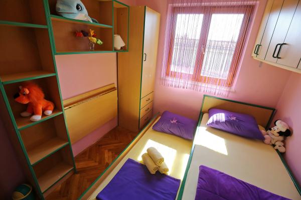 Huset er beliggende i Zadar (landsby Belafuža) kun 300 meter fra havet. er fuldt udstyret og er tilgængelig 120m2 fordelt på to etager. På første sal er der kuhinjasa stue, badeværelse og soveværelse. på anden sal har et køkken, soveværelse med dobbeltseng til to personer, soveværelse med to enkeltsenge, en stue med en sofa razvlačenjeza to personer og badeværelse. Huset har aircondition og har Wi-Fi. Værftet er et stort bord til hyggelige sammenkomster i frisk luft. Huset er designet til 9 personer. I nærheden ligger et supermarked, bageri, apotek og et lille marked. Den gamle del af byen, Lykønskningskort suncuudaljeni er omkring 2 km eller 20 min gåtur.