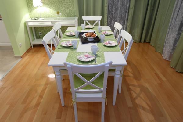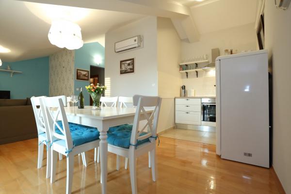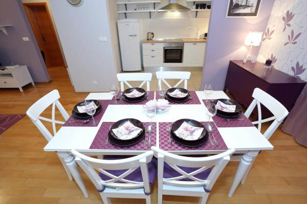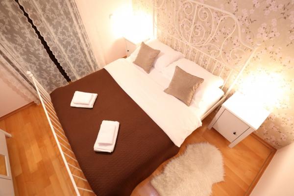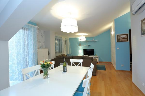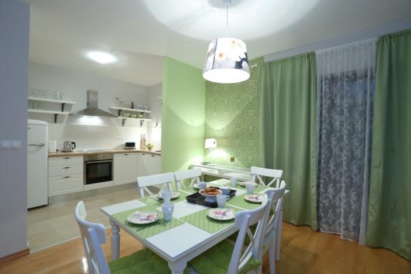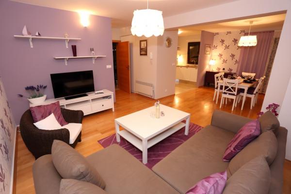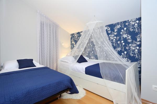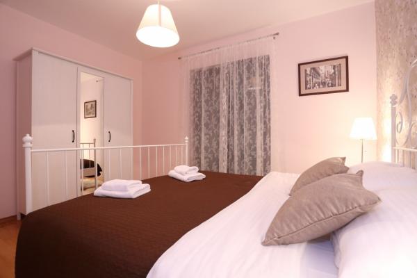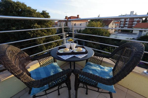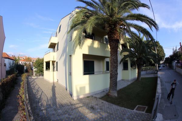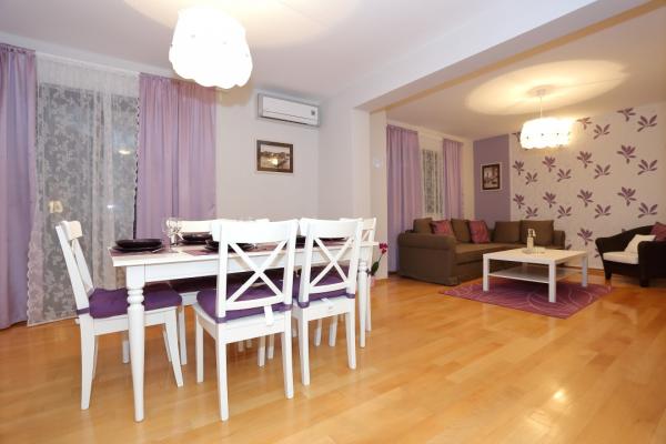 Fuldt møbleret villa med tre lejligheder i en rolig del af Zadar. Villaen er ideel for familier med børn og dem, der ønsker at være tæt på centrum og alle bekvemmeligheder, men i et roligt sted. Anlægget er placeret 15 minutters gang fra det historiske centrum, 10 minutters gang til sandstranden. I nærheden er alle de store temaer: et apotek, et posthus, butikker, restauranter, busstationer, sportsfaciliteter. Alle gæster er forudsat en privat parkeringsplads eller i givet fald, transfer fra lufthavnen eller bus / tog station (på forespørgsel). Hver lejlighed har tre soveværelser, to badeværelser, køkken, stue og terrasse. Alle lejligheder er udstyret med de nødvendige apparater: fade, sengetøj, håndklæder, rengøring, gratis toiletartikler. Alle gæster kan benytte den udendørs grill.