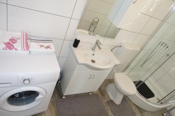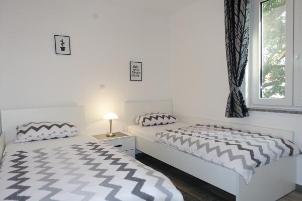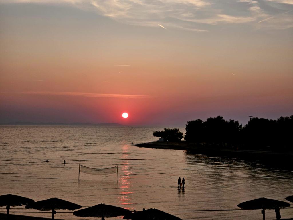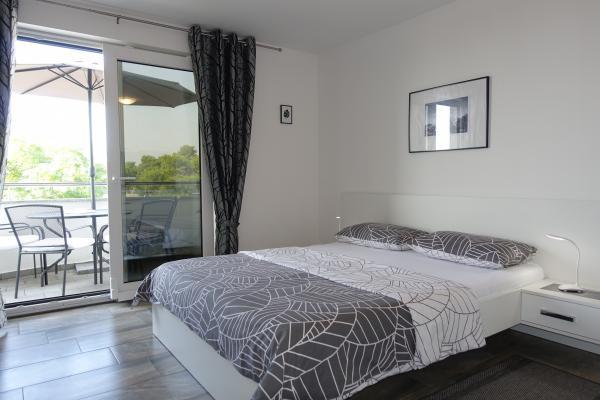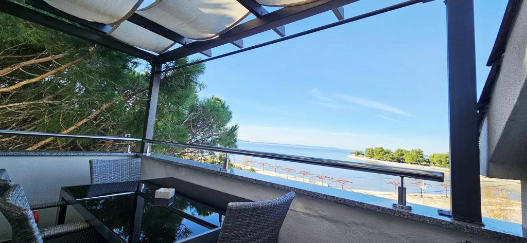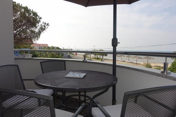 I nærheden: - Turistbyen Zaton - 60 m - Legeplads - 20 m - Kaffebar - 20 m - Restaurant med halvpension - 30 m - Bageri - 40 m - Kiosker med strandfaciliteter - 40 m - Udendørs fitnesscenter - 40 m - Zadar - 12 km - Nin - 1 km Stranden har brusere, omklædningsrum og toiletter. Det er muligt at leje liggestole, parasoller, vandcykler og andre faciliteter på stranden. Inden for en radius af 100 km ligger nationalparkerne: Paklenica, Kornati, Plitvicesøerne, Krka og Nordlige Velebit.