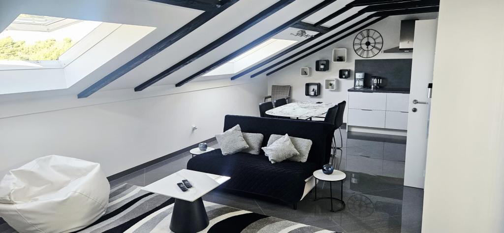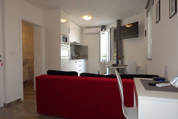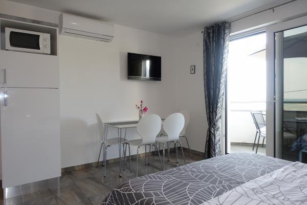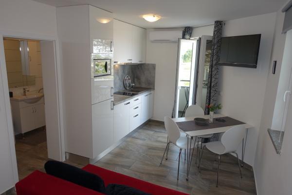 Faciliteterne ligger lige ud til havet, lige ved stranden i Zaton. Huse med lejligheder ligger ved siden af hinanden, og alle lejligheder har udsigt over havet. Wi-Fi, parkering og aircondition er inkluderet i prisen.