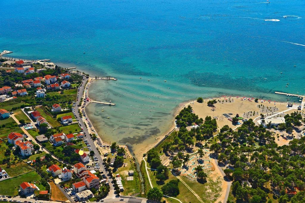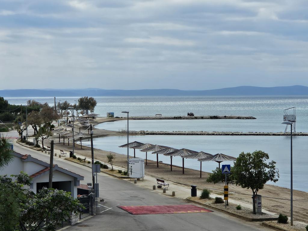 I nærheden: - Turistbyen Zaton - 60 m - Legeplads - 20 m - Kaffebar - 20 m - Restaurant med halvpension - 30 m - Bageri - 40 m - Kiosker med strandfaciliteter - 40 m - Udendørs fitnesscenter - 40 m - Zadar - 12 km - Nin - 1 km Stranden har brusere, omklædningsrum og toiletter. Det er muligt at leje liggestole, parasoller, vandcykler og andre faciliteter på stranden. Inden for en radius af 100 km ligger nationalparkerne: Paklenica, Kornati, Plitvicesøerne, Krka og Nordlige Velebit.