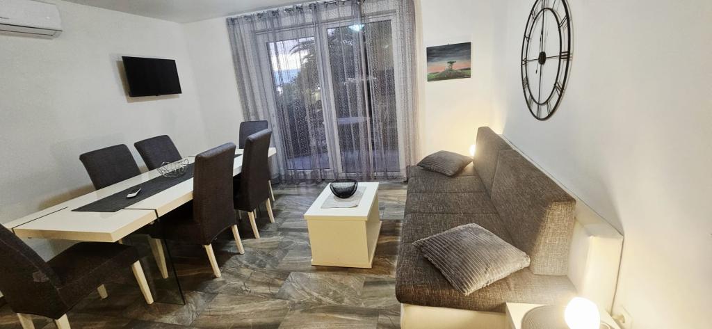 I nærheden: - Turistbyen Zaton - 60 m - Legeplads - 20 m - Kaffebar - 20 m - Restaurant med halvpension - 30 m - Bageri - 40 m - Kiosker med strandfaciliteter - 40 m - Udendørs fitnesscenter - 40 m - Zadar - 12 km - Nin - 1 km Stranden har brusere, omklædningsrum og toiletter. Det er muligt at leje liggestole, parasoller, vandcykler og andre faciliteter på stranden. Inden for en radius af 100 km ligger nationalparkerne: Paklenica, Kornati, Plitvicesøerne, Krka og Nordlige Velebit.