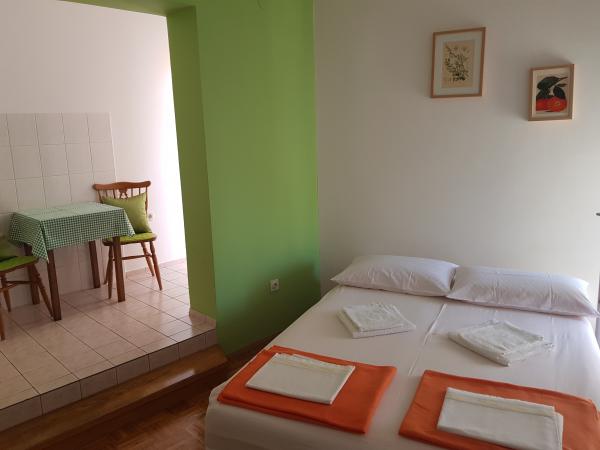 Denne ferie sygeplejerske anbefales at fru Aida flere gange med min familie og var meget tilfreds med dem. Hun havde ret, vi var meget tilfredse med fru Aida, damen er utroligt hjælpsomme og venlige, vores håndklæder ændres hver dag, opholder sig i midten af skiftende sengen, ren, super. Stor terrasse, stenstrand, roligere miljø, men tilstrækkelig strand. Bagværk, frugt + grøntsager, is, pandekager, kartofler, attraktioner for børn osv et par restauranter hvor de gør producere fremragende pizza. Vi var der i ti dage og to nætter har levende musik på stranden, arrangeret konkurrencer for børn. Sejlere grillet frisk fisk, stor begivenhed!