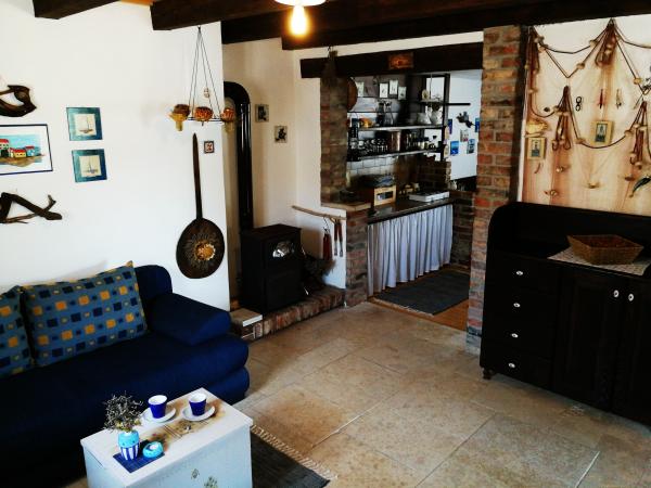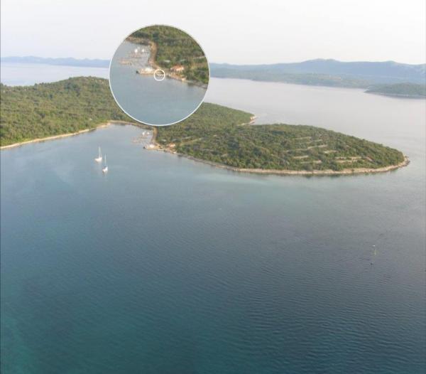 Huset er beliggende i et roligt og beskyttet bugt bugt på den vestlige side af øen Iz. Det ligger tæt på havet. Centrum af Veli Iz, kan nås med bil for at få dagligvarer og andre forsyninger. Øen Iz, hver dag er der en færge. Huset er udstyret med solceller, madlavning gas og vandforbrug regnvand. Der er to værelser, soveværelse har en dobbeltseng og en sovesofa til to personer og en seng for én person og køkken. Terrassen er rummelig med smuk udsigt over havet, og har også en grill. Bo vil helt sikkert gøre det muligt for fred, væk fra byens larm, i stilheden og skyggen af olivenlunde omgiver huset.