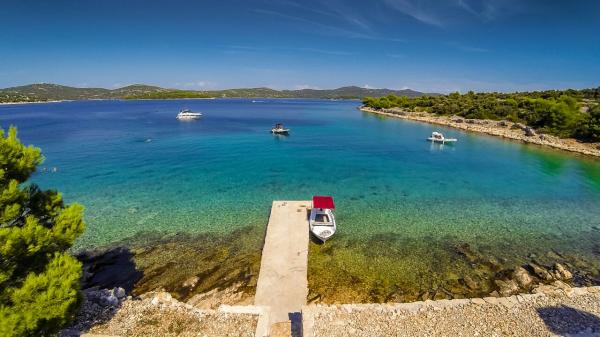 Oplev magien i den oprindelige Middelhavet stenhus, som ligger i en skjult bugt Jezera ,. Den kan rumme 3 personer og har et køkken, en seng, en komfortabel sofa, grill, have, stor terrasse med bord, bruge båden og strand foran hjem Huset ligger i et Hidden Cove kaldet småsten. Bugten er omkring 500 m væk fra centrum og 1 km fra byens centrum. Det er et sted, hvor man kan nyde ensomhed og alle de fordele, dette hus tilbyder. Selvom huset er lidt længere væk fra en frisk vand, el og varme (solpanel). Inde i huset er et stort rum med sofa, der udvider og seng for en person, køkken, bar (sten) og et badeværelse. Der er også mange originale souvenirs og detaljer, der gør dette hus unik. Udenfor huset er der en stor terrasse med bord og stole (perfekt til begivenheder), grill, egen båd, gratis parkering og en smuk strand, hvor du kan nyde og slappe af hele
