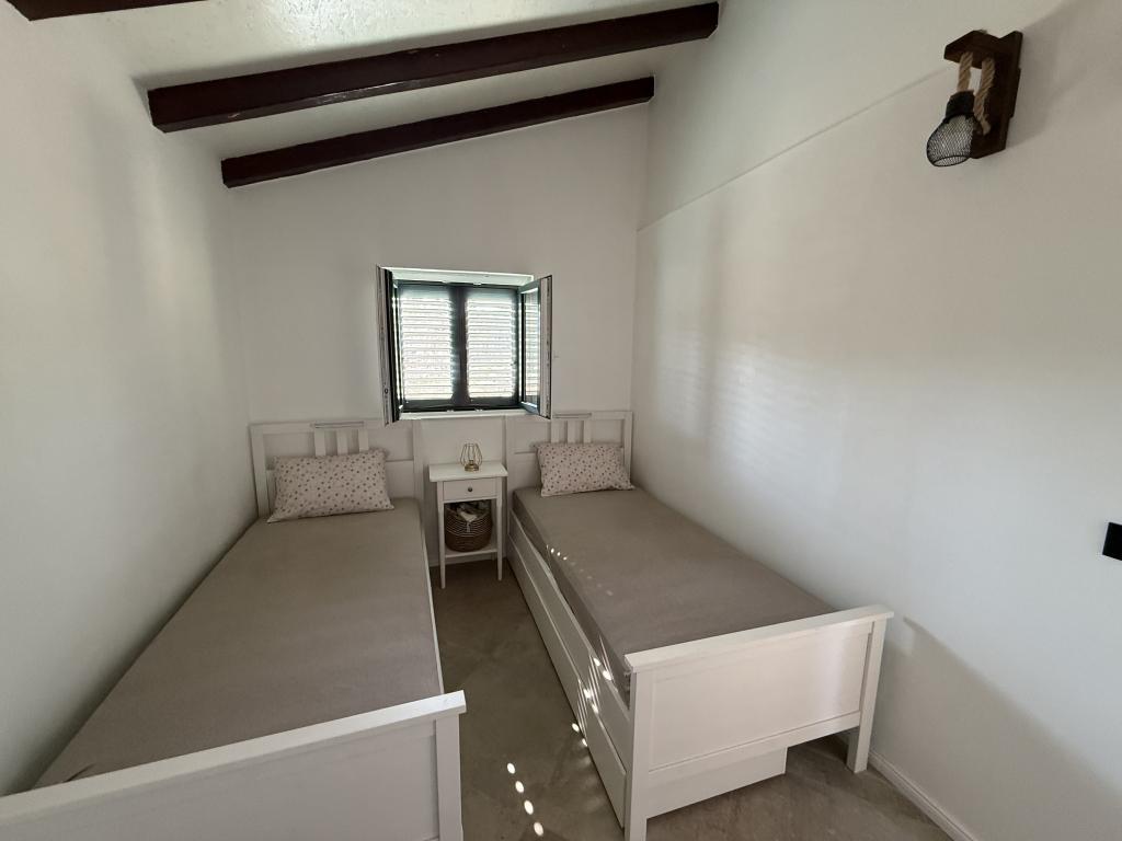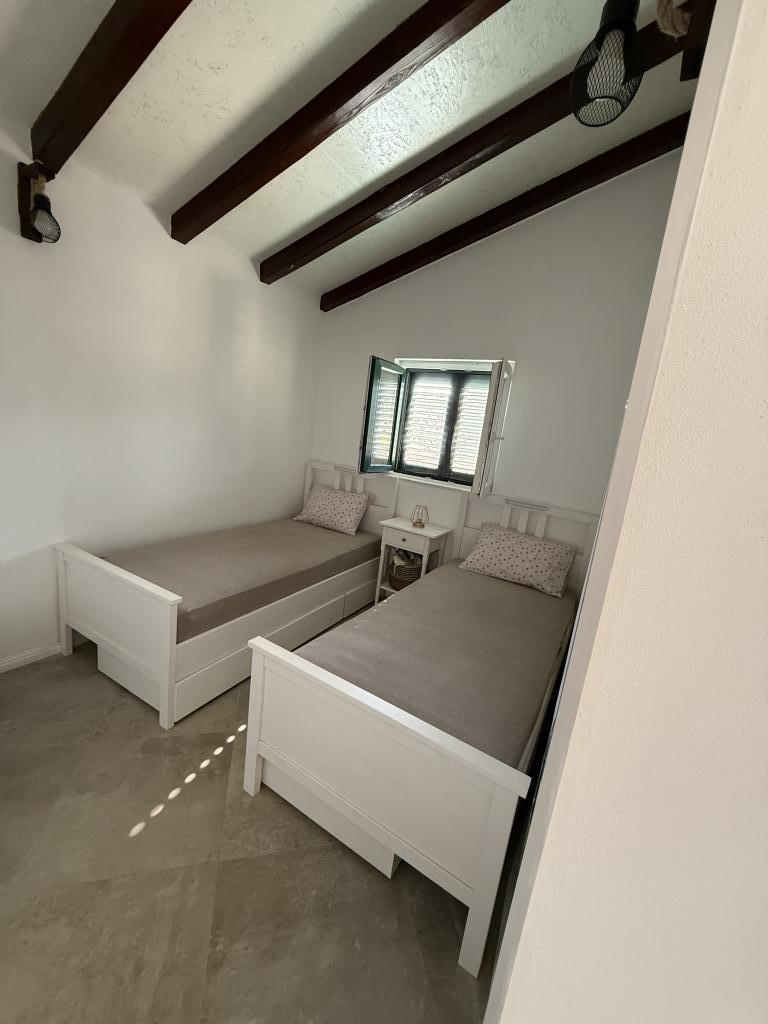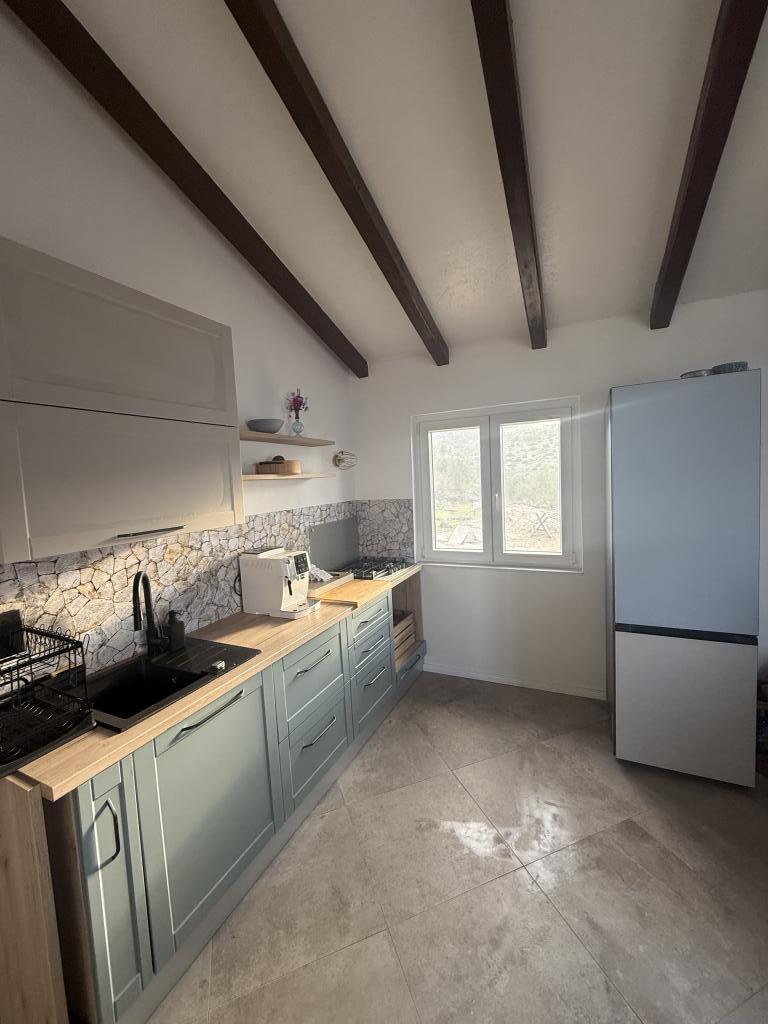 Det nyrenoverede feriehus "Kula" ligger i en oase af fred i Bizikovica-bugten på øen Žut. Huset ligger i et afsidesliggende område, 20 meter fra havet og havnefronten. Terrassen tilbyder en smuk udsigt over havet. Ideel til afslapning af sjæl og krop. Ejendommen har to soveværelser, et badeværelse med bruser, et udstyret køkken og en stor terrasse. Ejendommen har rindende vand, hvis kilde er regnvand, det er ikke til drikkevand, det bruges udelukkende til badning og vask. Vand bør bruges rationelt, på øen er vand flydende guld. Elektricitet kommer via solpaneler, 12V. Toprestauranter, ACI-marinaen og et marked ligger i den nærliggende bugt, som nås via en gåbar og markeret sti over en bakke, afstanden er 20 minutter til fods. Det er bedst at købe dagligvarer og drikkevand i afgangshavnen.