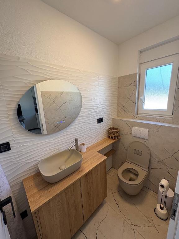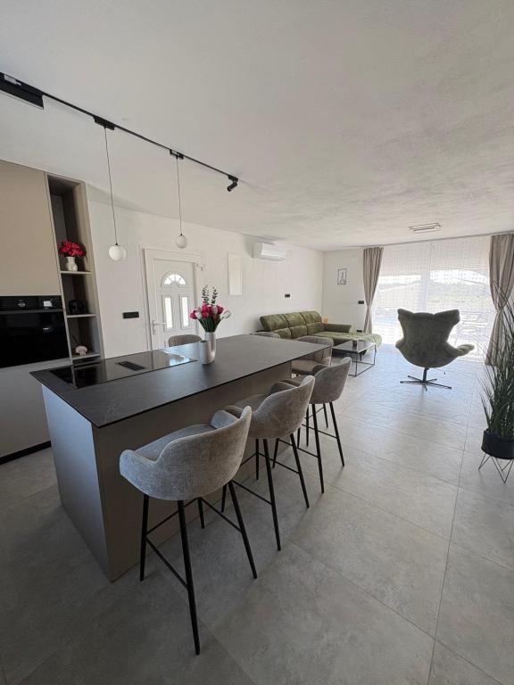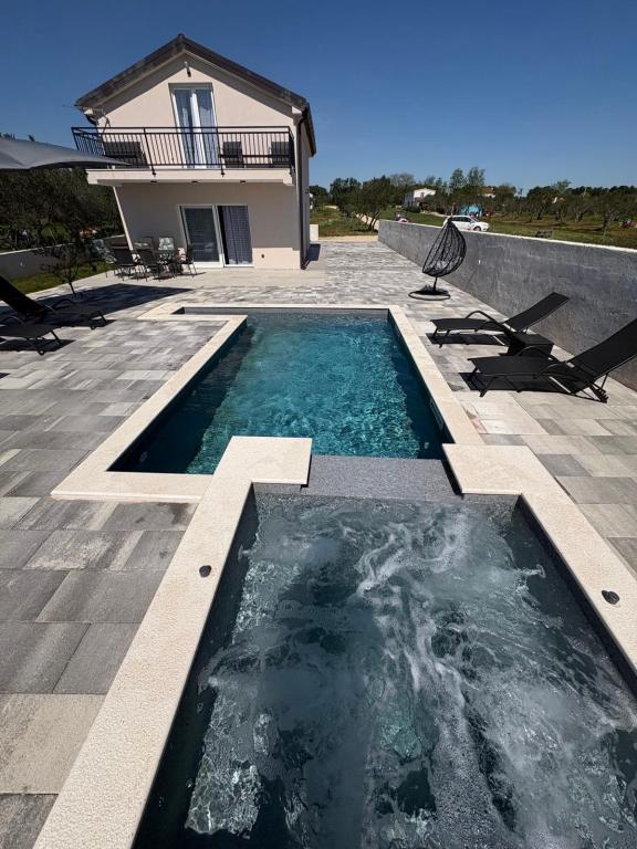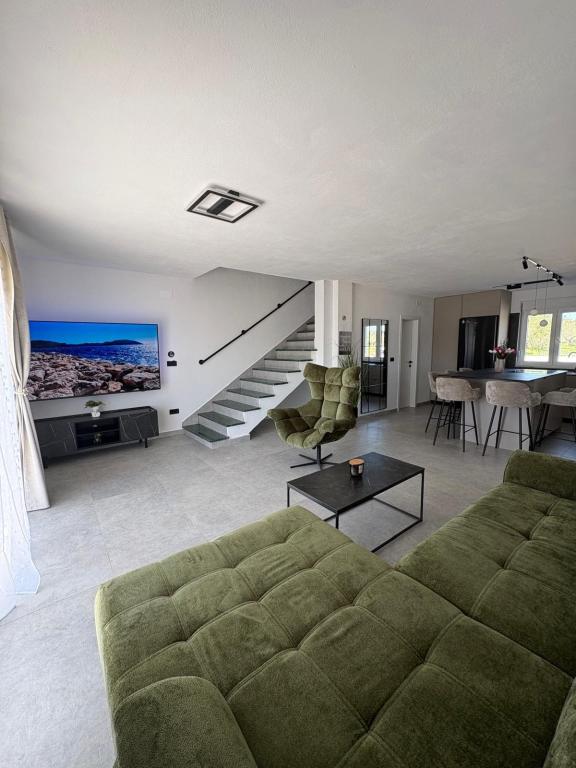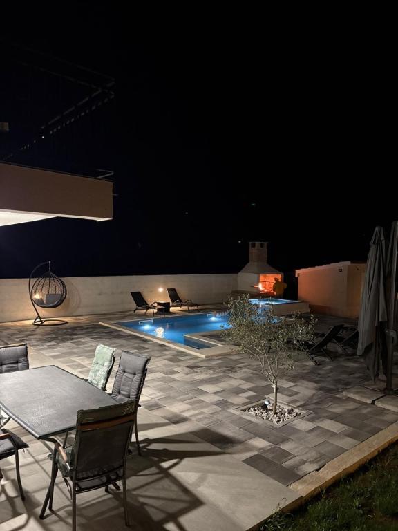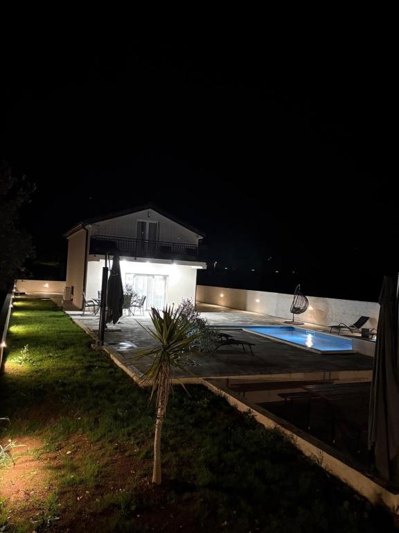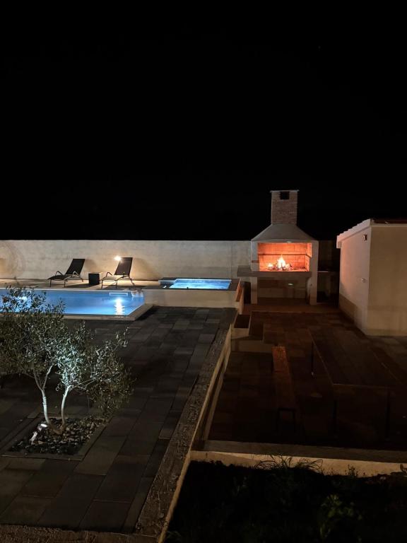 Feriehuset ligger i hjertet af en olivenlund, kun 2 km fra havet, og er et ideelt sted for en komplet ferie i fred og ro. Omgivet af natur tilbyder det en følelse af privatliv væk fra byens folkemængder. Den opvarmede pool, perfekt til at nyde forårs- og sommerdage, skaber en særlig atmosfære. Den rummelige have er et ideelt sted for familieaktiviteter. På husets første sal er der 3 soveværelser med dobbeltsenge og et lille badeværelse. Det tredje soveværelse har også en balkon med en smuk udsigt over de grønne områder, og i stueetagen er der et rummeligt køkken og stue. Feriehuset Frano er et ideelt valg for dig, fordi det kombinerer naturens komfort med havets nærhed og tilbyder dig alt, hvad du behøver for et uforglemmeligt ophold. Huset er udstyret med alle husholdningsapparater og en udendørs pejs.