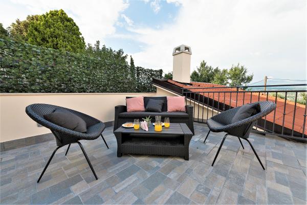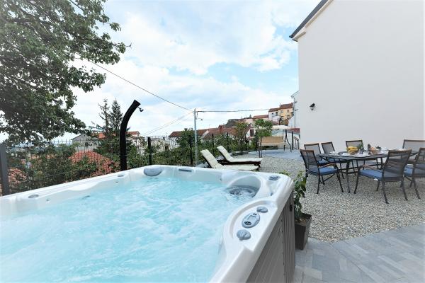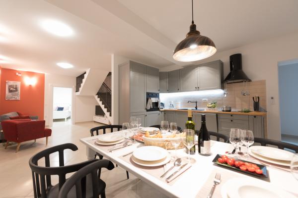 Ambergs sommerhus er moderne og fuldt udstyret, og ligger i Kastavs gamle bydel, på bakken under den historiske Creekvine, et beskyttet kulturmonument. Huset er skjult fra udsigten med en enestående udsigt over Kvarner Bay og de omkringliggende bjerge, og byder på komfort i et førsteklasses feriehus. Placeringen er ideel til besøgende, der ønsker at opdage Opatija Riviera, Istrien og Kvarner. Huset har tre lyse og rummelige dobbeltværelser, tre badeværelser, et galleri. De to værelser har eget badeværelse. Et værelse har sin egen store terrasse. Alle har eget fladskærms-tv og separate klimaanlæg. Nogle er udstyret med toilet og et skrivebord. I den nederste del af huset er der en stue, et veludstyret køkken og spisestue, et legeplads, et vaskerum og en cykelopbevaring. Wifi er tilgængelig i hele bygningen. På gården er der et boblebad til seks personer (2x2 m), havemøbler af høj kvalitet, sving og grill. Ideel til familie og venner.