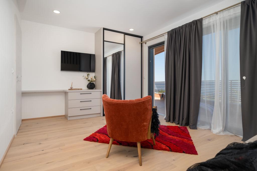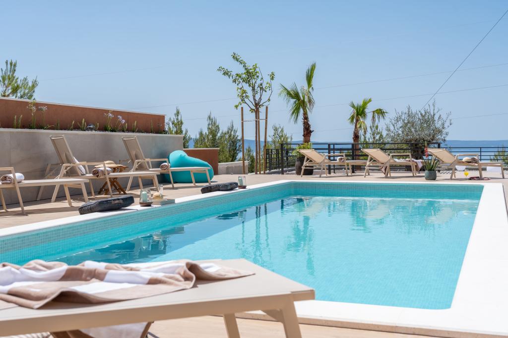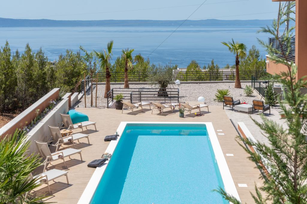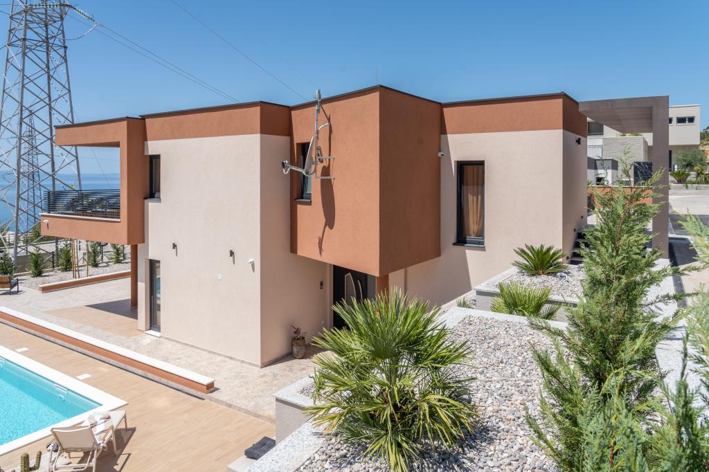 En moderne villa med spektakulær panoramaudsigt over det azurblå hav og det gigantiske Biokovo-bjerg - en sand luksusoase for familier eller grupper på op til 8 heldige personer! Nyd en privat pool til en forfriskende dukkert, en grill til uforglemmelige aftener og et rummeligt udendørs loungeområde, perfekt til afslapning, romantiske øjeblikke eller muntre familiemiddage under stjernerne. Din drøm i Dalmatien venter på dig!