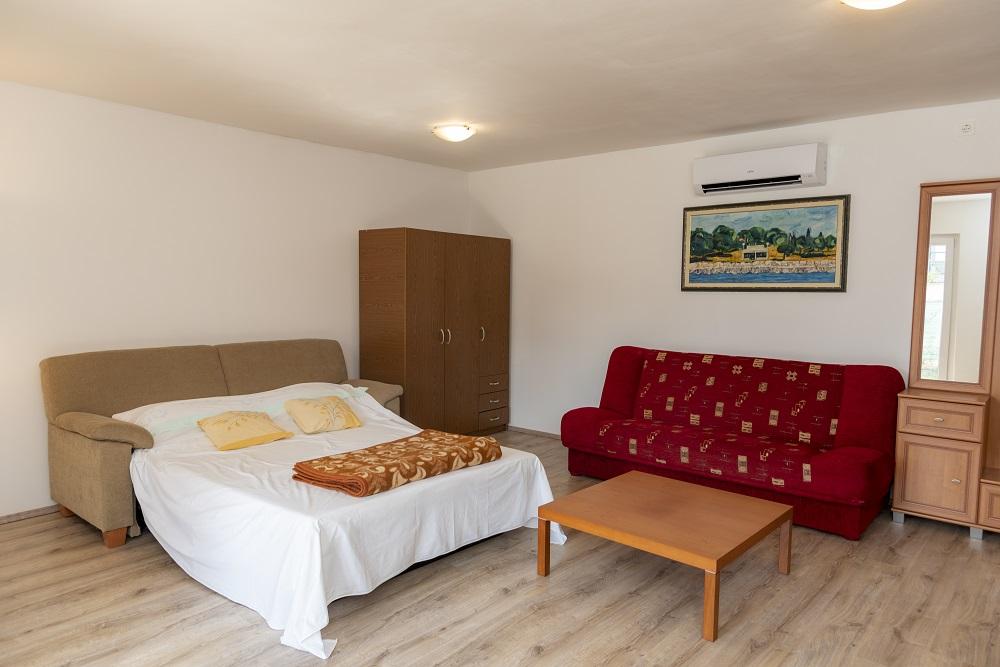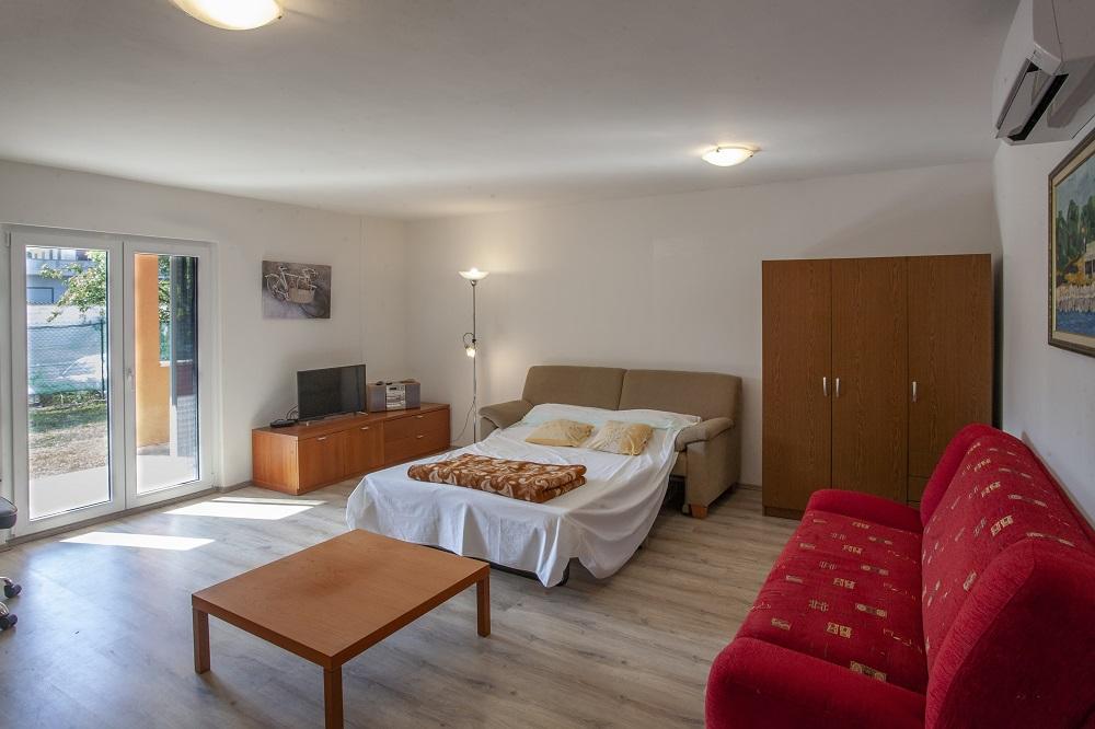 Villa Emma er et lille feriehus i stueetagen beliggende i en rolig del af Medulin. To værelser, et køkken, et badeværelse og en stor overdækket terrasse med grill giver fuld komfort for tre personer. En indhegnet ejendom på mere end 1000 m2 giver privatliv, ro i sindet og privat parkering. Det er 500 m fra havet og 1, 5 km fra centrum af Medulin og 600 m fra banken, det nærmeste supermarked eller restaurant. Fuldt udstyret med aircondition, gratis trådløs internetadgang og tv, køkkenet har komfur med ovn, mikroovn, køleskab og opvaskemaskine og et badeværelse med vaskemaskine. I det nye men uudviklede område i byen, i kort afstand fra centrum og alle de nødvendige faciliteter, skånes det sommermængder og støj. Asfaltvejen ligger kun 50 m fra indgangen til ejendommen, og byen Pula og lufthavnen ligger cirka ti km væk. Huset er totalrenoveret i 2018, og det lukkede land og den omgivende natur giver fred og privatliv. Ejere bor ikke i nærheden af ejendommen, men er altid tilgængelige for hjælp. .