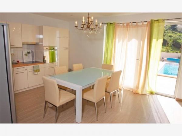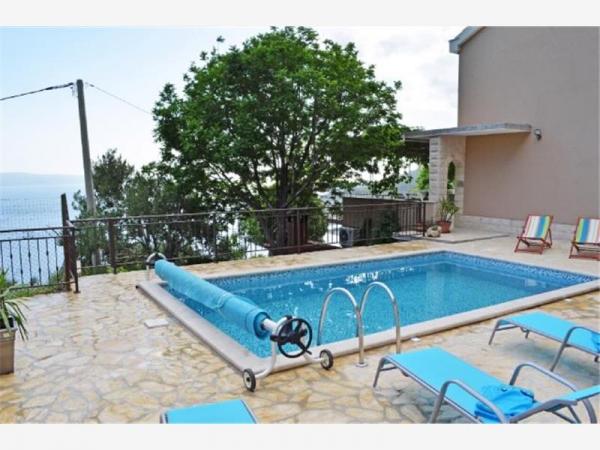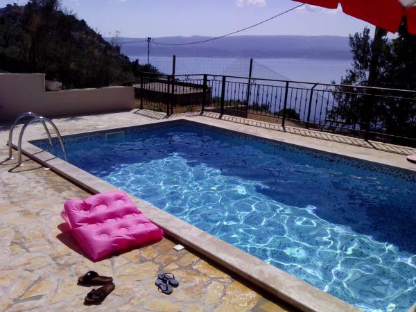 Huset er moderne og fuldt udstyret. Huset har en swimmingpool, som vores gæster kan opdatere og slappe af på varme sommerdage. Ved siden af poolen i den overdækkede del af grill med et stort træbord og bænke. Det har en udendørs tuš.Lijepo sted at socialisere. Ud af midt i huset er en stor terrasse på 100 kvadratmeter, som tilbyder en storslået udsigt over havet, byen, bjergene øer, floden Cetina, den Forticu bestemmelsen. Det er virkelig smukt. Det er kun 20 minutters gang til byen, og med bilen i 5 minutter. Under alle omstændigheder har du en rolig og behagelig sted at nyde med din familie og venner, og i 5 minutter er du i fokus i byen, der giver dig alt det nødvendige for en kvalitet ferie. Også, hvis du ønsker at komme med deres venner med os og slappe lidt ingen vil forstyrre fordi huset er alene. Lige foran, har du en overdækket garage. Huset er i to etager. Dole har 100 kvadratmeter og den øverste etage 50. Den øverste etage har en balkon, hvorfra der er også en visning på alle. Alt er lige ved hånden. Objektet er din