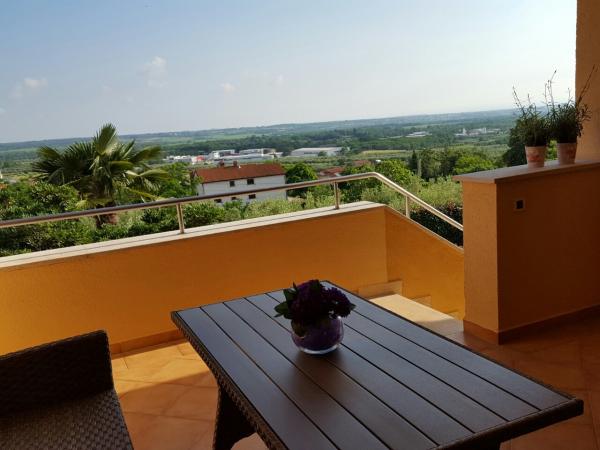 Nyindrettede Villa Adriatic ligger i den maleriske landsby Kaštelir, 10 kilometer væk fra byens centrum, vil tilbyde dig de ideelle betingelser for en ferie med familie og venner. Villa består af 2 soveværelser, 2 badeværelser, spisestue, køkken, stue, rummelig overdækket terrasse med en fantastisk udsigt over Adriaterhavskysten og værtshuse dekoreret med typiske istriske. Der er også en stor swimmingpool med solterrasse. For dem, der søger aktiv ferie i 5 km afstand er en af de største vandland i Europa, badeland Istralandia; 4 km afstand adrenalin park og Motodrom Tar, ridning og mange andre aktiviteter, som vi vil gerne mødes.