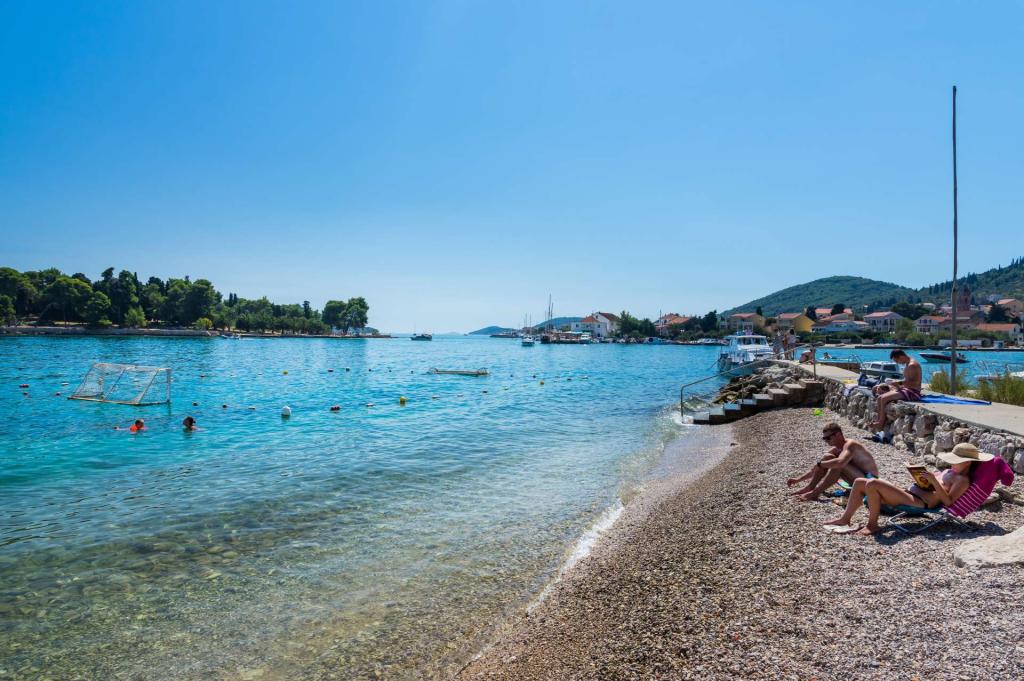 Velkommen til et nybygget feriehus med privat opvarmet pool, beliggende i Preko på den smukke ø Ugljan. Dette moderne hus har 4 elegante soveværelser, 3 badeværelser og er omgivet af en rummelig, fuldt indhegnet have med frodige grønne områder. Ejendommen inkluderer privat parkering til op til 4 biler, en terrasse med grillplads, en tagterrasse med en smuk 360° udsigt og en lille, anlagt have. Nyd den smukke havudsigt fra hver etage og nå den berømte Jaz-strand på kun 3 minutters gang. Jaz-stranden er den største sandstrand i Preko og bærer stolt den Blå Flag-økocertificering for ren og sikker svømning. På den anden side af gaden ligger øens største supermarked, som omfatter en café, en slagter og et bageri.