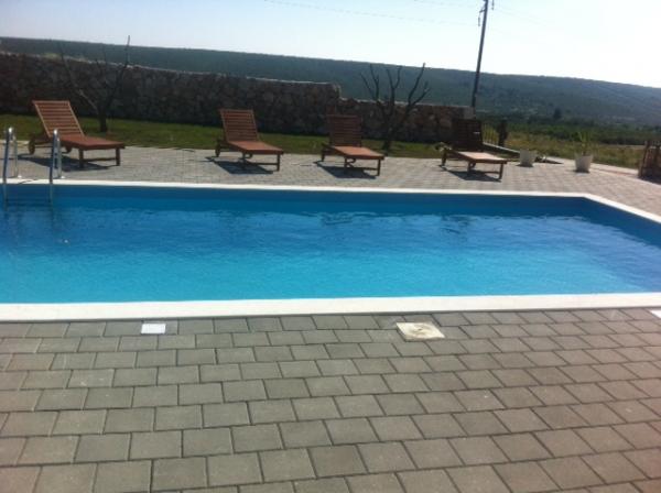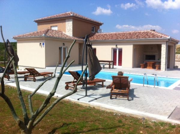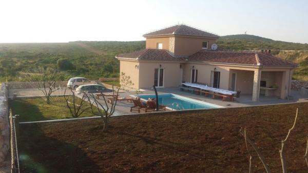 Moderne og komfortable feriehus er beliggende i baglandet til Sukosan, kun 4 km fra den nærmeste strand, restauranter og turist begivenheder. Den består af 4 soveværelser, 4 badeværelser, toilet, køkken i forbindelse med stuen. Fra stuen ud til terrassen med en overdækket grillplads og en pool på 32 m2