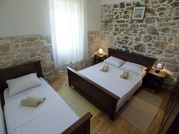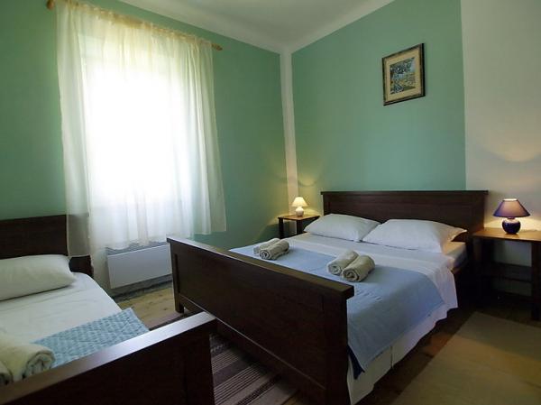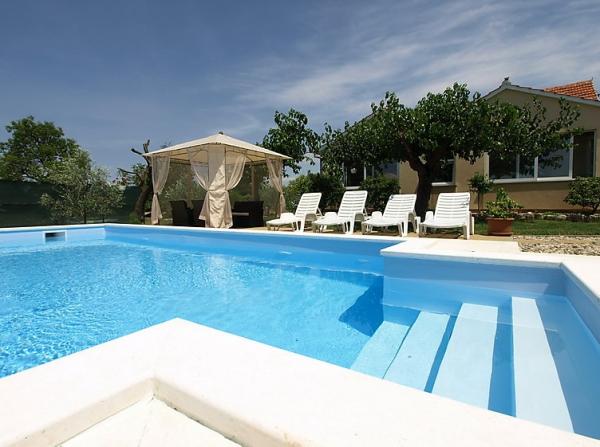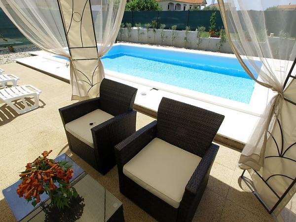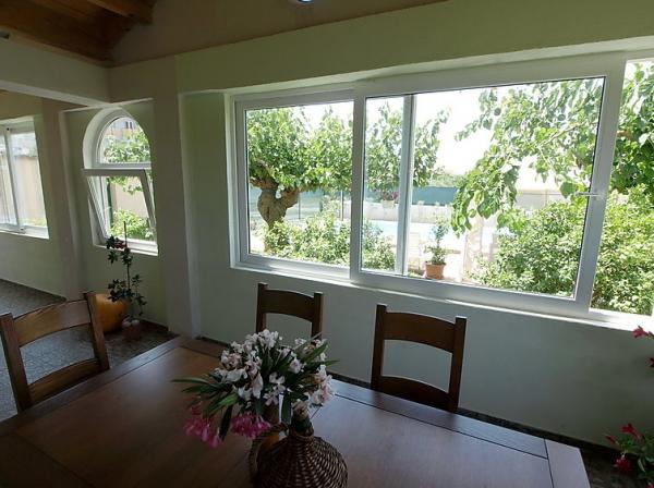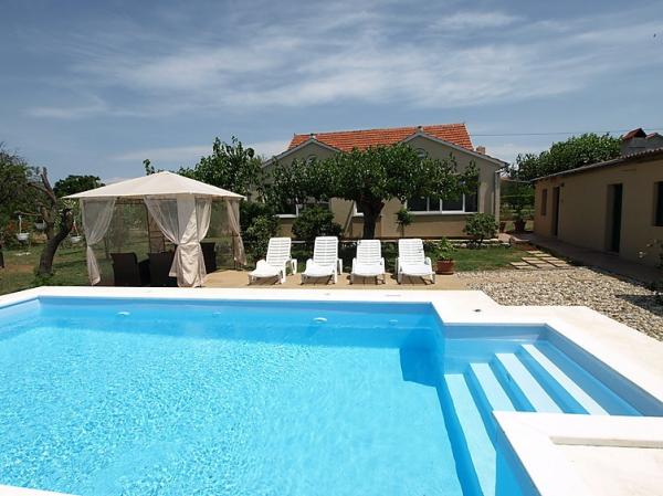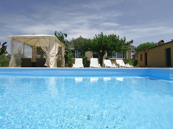 Familien af 3-værelse-hus 100 m2 med hus grill, stor have med græsplæne og træer på 1600 m2 og en opvarmet swimmingpool måler 7 x 4 x 1,5 m. Parkering ved huset. Nærhed til butikker og restauranter 300 m, og sandet og stenstrand 800 m.