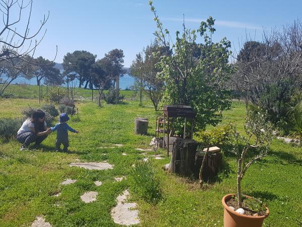 Helt og moderne udstyret hus med 2 separate lejligheder og fælles køkken og have. Hver lejlighed har køkken, aircondition og en fabelagtig havudsigt. Ideel til to familier, fordi det giver privatliv, men også plads til socialisering. Huset har 3 badeværelser, opvaskemaskine og vaskemaskine. Haven er rummelig og smuk. En lejlighed er 4 2 og den anden 2 2. Sikret gratis parkering til 2 biler. Bemærk: Huset er ikke løsrevet. For børn i haven har vi et lille dias og en sving, og vi har en barneseng og en fodringsstol.