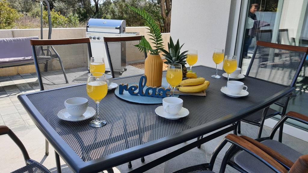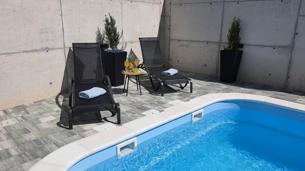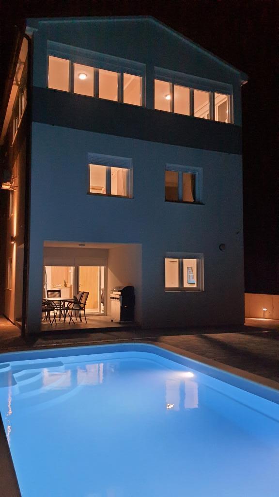 Fuldstændig renoveret indhegnet feriehus med opvarmet pool bestående af 4 lejligheder. Lejlighederne A1, A2, A3 består af køkken, badeværelse, to soveværelser (seng 160x200 og køjeseng 100x200), terrasse, stue. A4 er i to etager. Stueetagen har badeværelse, køkken og stue, og ovenpå 2 soveværelser (180x200 og 2x100x200), stue og badeværelse. Huset har parkering, som er lige så tilgængeligt. Den har en stor gasgrill og et socialt område. Poolen er 7,5x3,5. Hver lejlighed har en vaskemaskine og en A4 og opvaskemaskine. Alle lejligheder har aircondition, satellit-tv og WI-FI. Brandsikringssystem. Vi er 350-400 m til stranden, à 700 m til byens centrum. Der er mange strande i området, som er en skam at gå glip af. Vi er 2 km til Biograd, à 22 til Zadar til Šibenik omkring 30 km. I nærheden er indkøbscentre Lidl, Plodine, Kaufland, Bure center, Supernova. Vrana-søens naturpark 5 km. Adrenalin Park Biograd ca 3 km. Fra 1.7.-31.8. værten bor i huset.