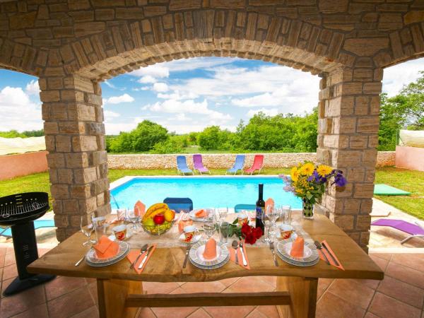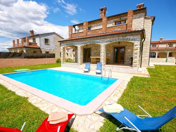 fuldt udstyret villa med pool, nær Pula. villa til 8 personer. Villaen har 4 soveværelser, 3 badeværelser, køkken og stue. fuldt udstyret: opvaskemaskine, aircondition, tv, satellit ,. Huset har sin egen private parkeringsplads og en swimmingpool, 2 terrasser og grill. blev bygget af sten. indvendige af huset er lavet af træ og sten.