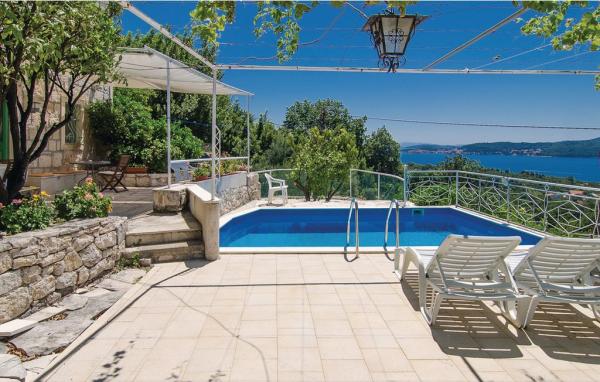 Huset ligger i Viganj på Peljesac-halvøen. Foran huset er en stor terrasse med en smuk udsigt over øen Korcula. Også på terrassen er der en swimmingpool, der udelukkende er tilgængelig for dig at bruge. Huset består af 4 værelser, 3 badeværelser, køkken og spisestue og en stor stue beliggende på loftet. Huset har sin egen private parkering. Husets miljø på over 1000 m2 består af en frugthave af appelsin, citron, vin og granatæble. Fred, ro og sang med fugle garanterer dig en behagelig hvile og afslapning fra hverdagen. Han sover perfekt i dette hus, drømmer godt og hviler smukkere.
