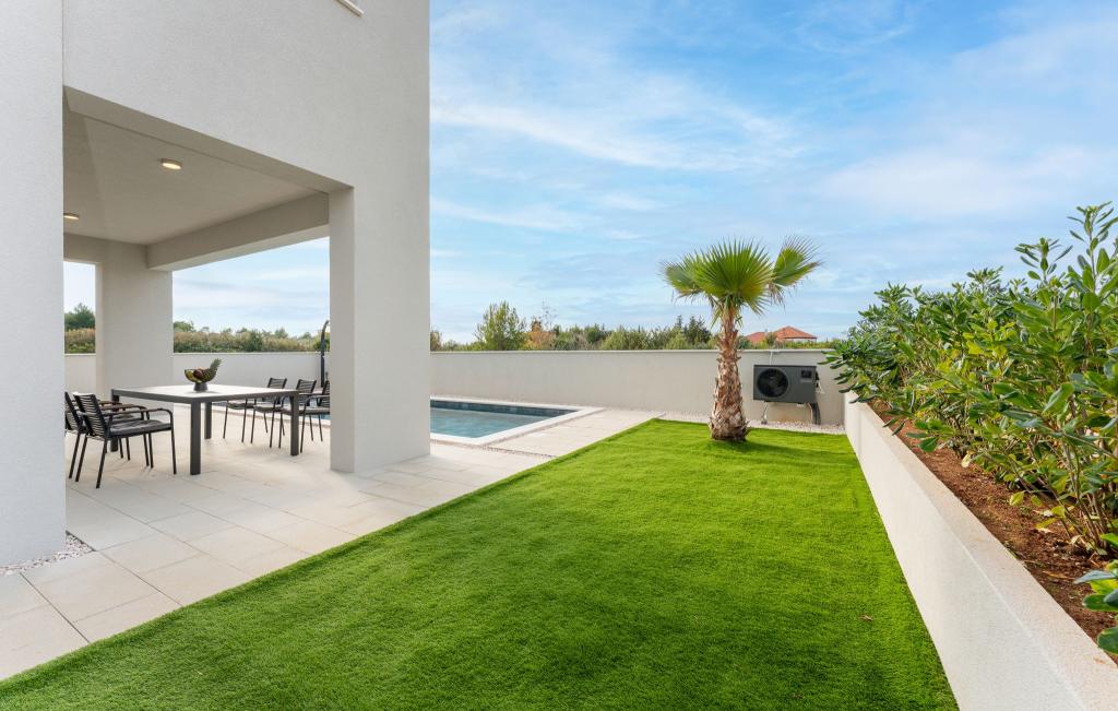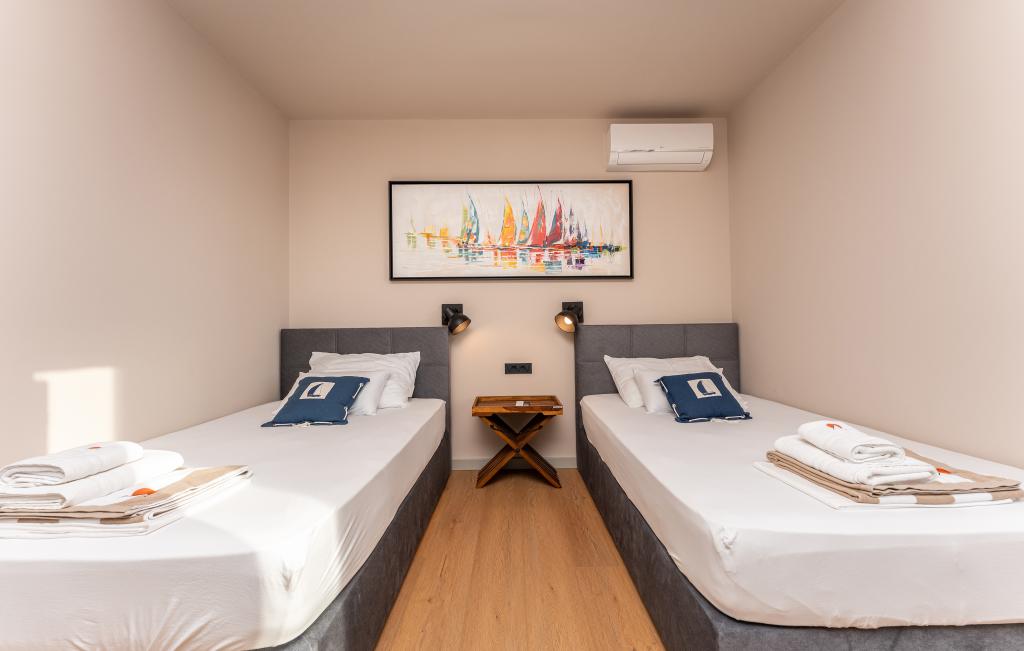 Huset på cirka 270 m² ligger i Zaton, 12 km nordvest for Zadar. Bygningen er ny og stod færdig i juni 2025. I den indhegnede have er der 4 parkeringspladser, 2 ladestandere til elbiler, en 30 m2 opvarmet pool og en stor terrasse, hvor I kan nyde skyggen indtil om eftermiddagen. Huset har to lejligheder, der er identiske i planløsning, hver med en stue, et fuldt udstyret køkken, 3 soveværelser, 2 badeværelser og et ekstra toilet. Alle værelser har aircondition og er udstyret med et smart-tv. Huset er designet til 12 personer. PS5 er placeret i børneværelset på hver etage af huset. På husets tag er der en terrasse med havudsigt, et ekstra tekøkken, havemøbler og et massagebadekar til nydelse i løbet af dagen og aftenen. I kan nyde vores faciliteter med familie og/eller venner og være sammen, men også separat (hver i sin egen lejlighed), når I har brug for det. Om dagen vil du helt sikkert nyde poolen og skyggen fra den nederste terrasse, mens du om aftenen kan nyde tagterrassen.